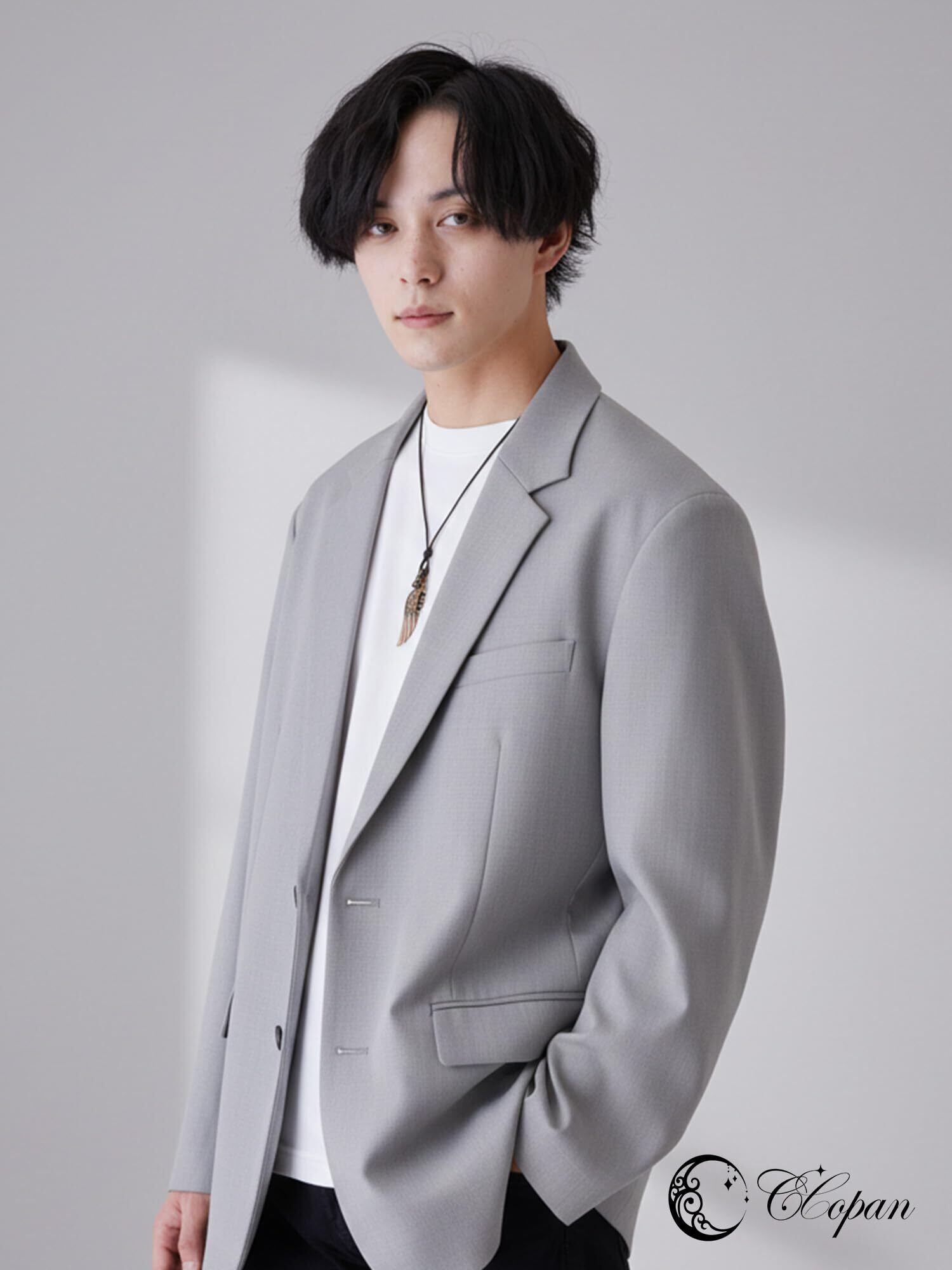 【レザーコード 牛革】首元は牛革の紐タイプ。金具チェーンとは違うラフさが出やすく、カジュアルにもきれいめにもなじみやすいのがポイント。肌当たりが気になる場合は、着用後に乾いた布で軽く整えるケアがしやすいです。