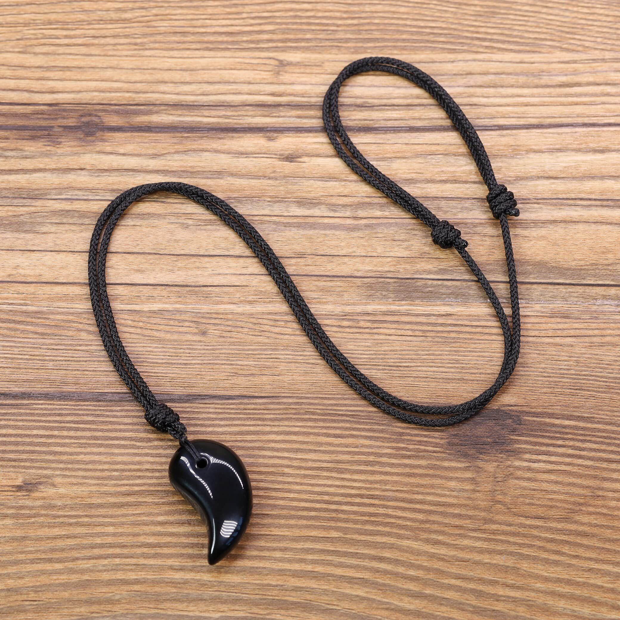 オブシディアン 勾玉 魔除けお守りネックレス ユニセックス