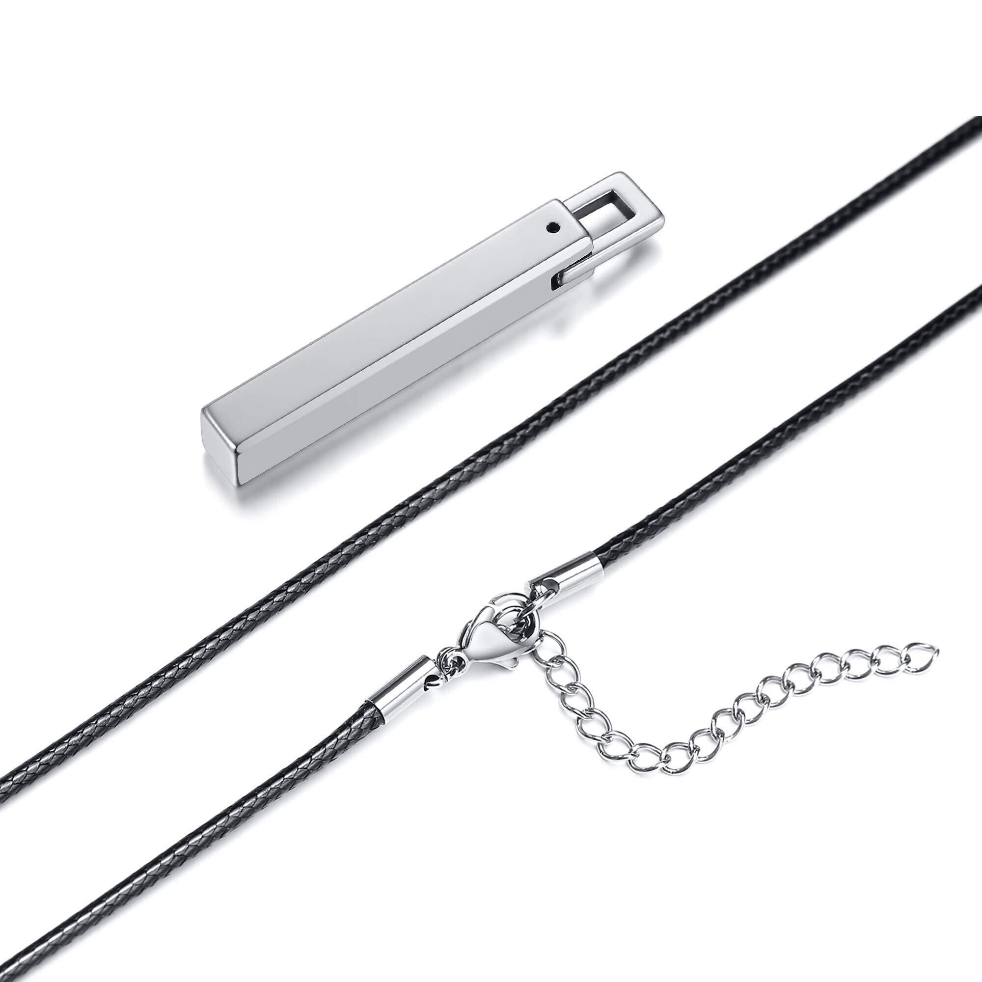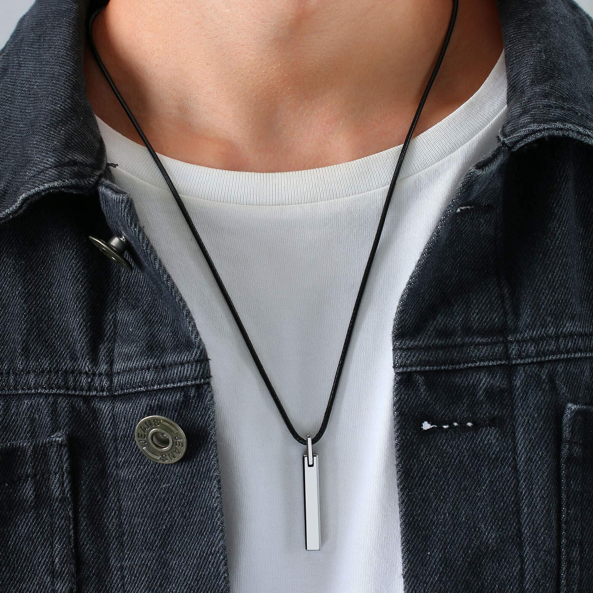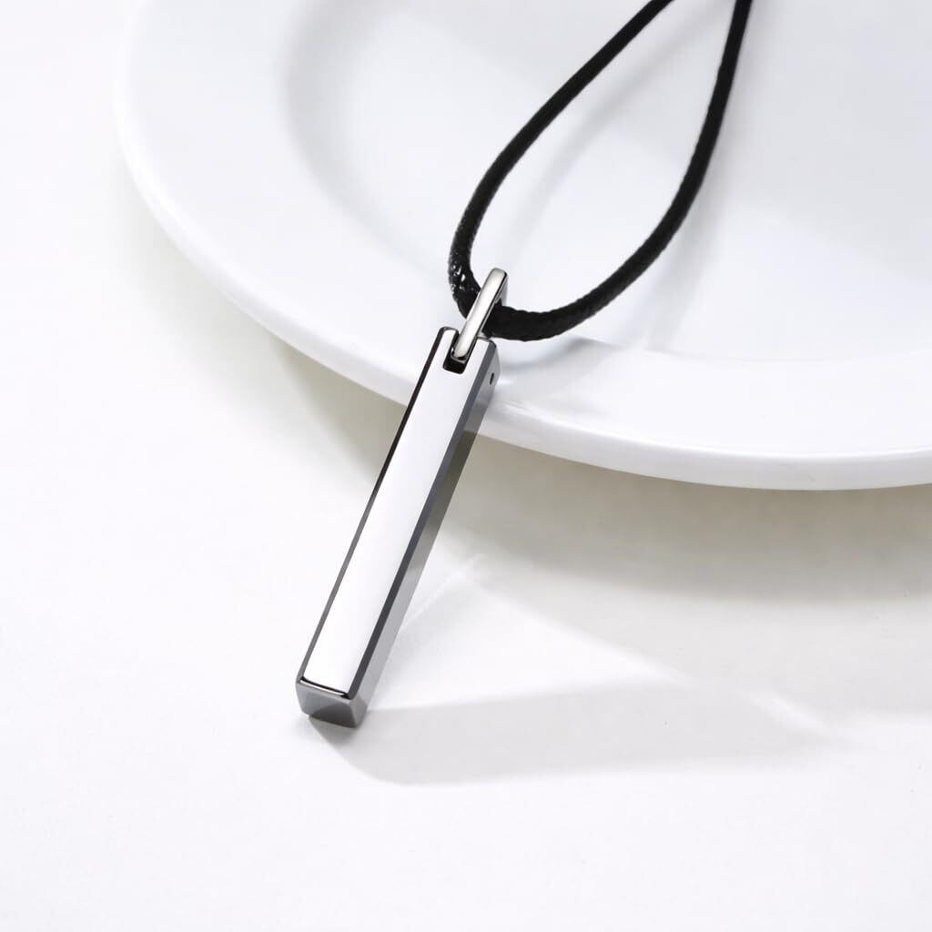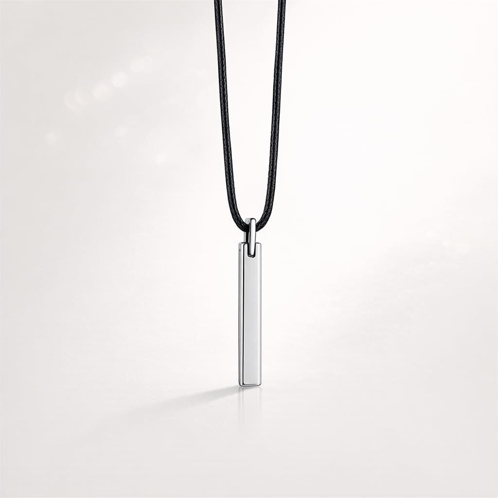 【Rockyu ネックレス】メンズ バーペンダント スティックネックレス シンプル 縦長デザイン ペンダントネックレス。高硬度のタングステン素材を使用し、鏡面仕上げの美しい光沢が特徴。耐久性にも優れ、長く愛用できるメンズファッションネックレスです。