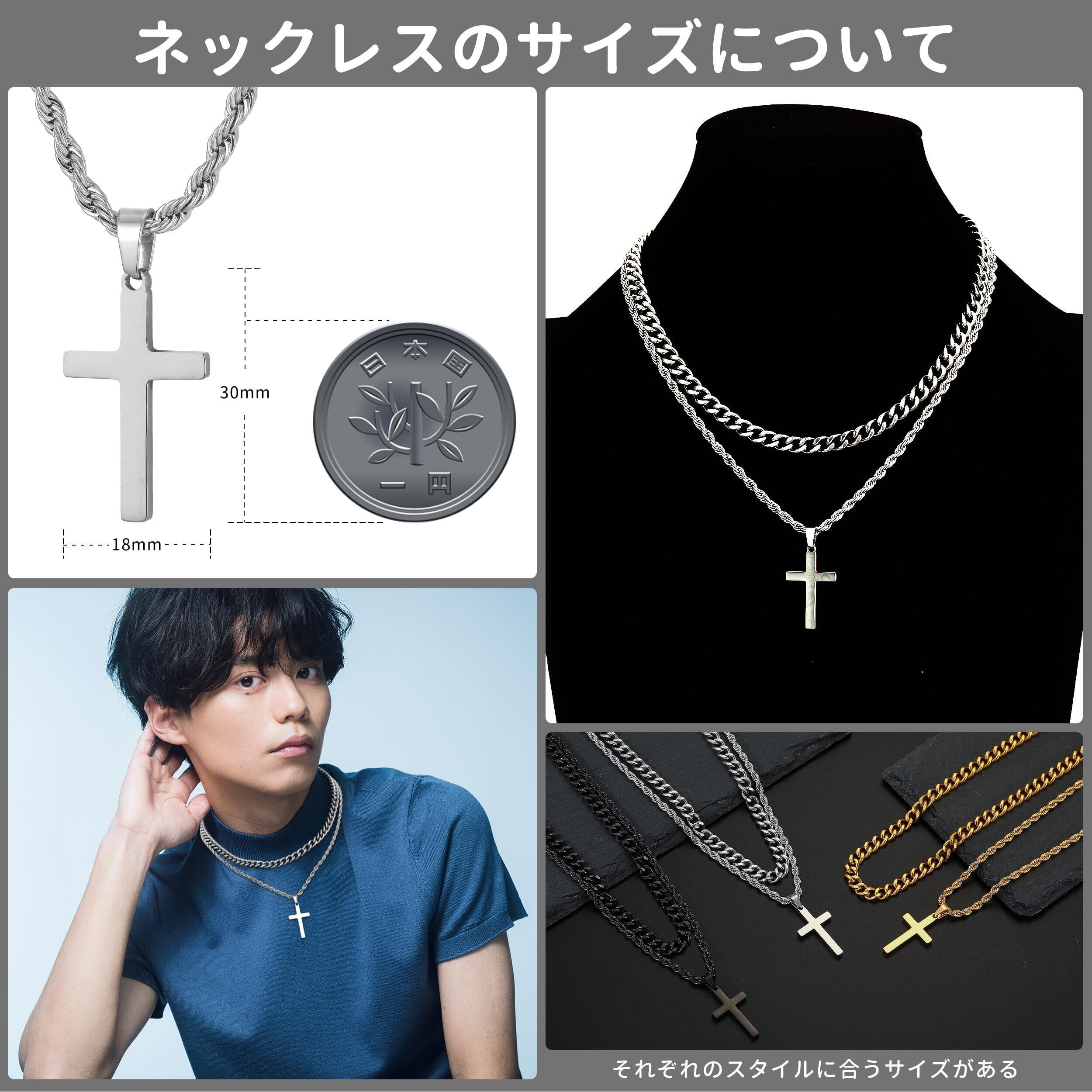 十字架 ネックレス チェーン サージカルステンレス クロス ネックレスメンズ 金属アレルギー対応 ダブルチェーン 高校生 男性 40/45/50/55/60cm