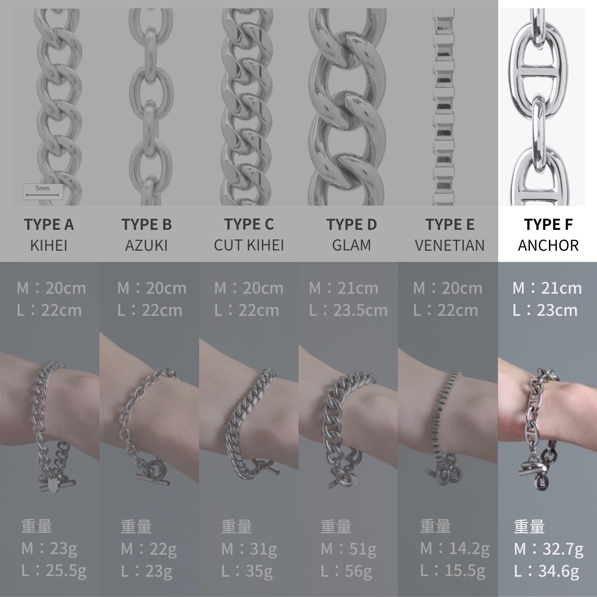 ブレスレット メンズ ヴァリアスチェーンブレスレット サージカルステンレス (金属アレルギー対応) つけっぱなし/F ANCHOR Mサイズ 21cm 03BR001BSF