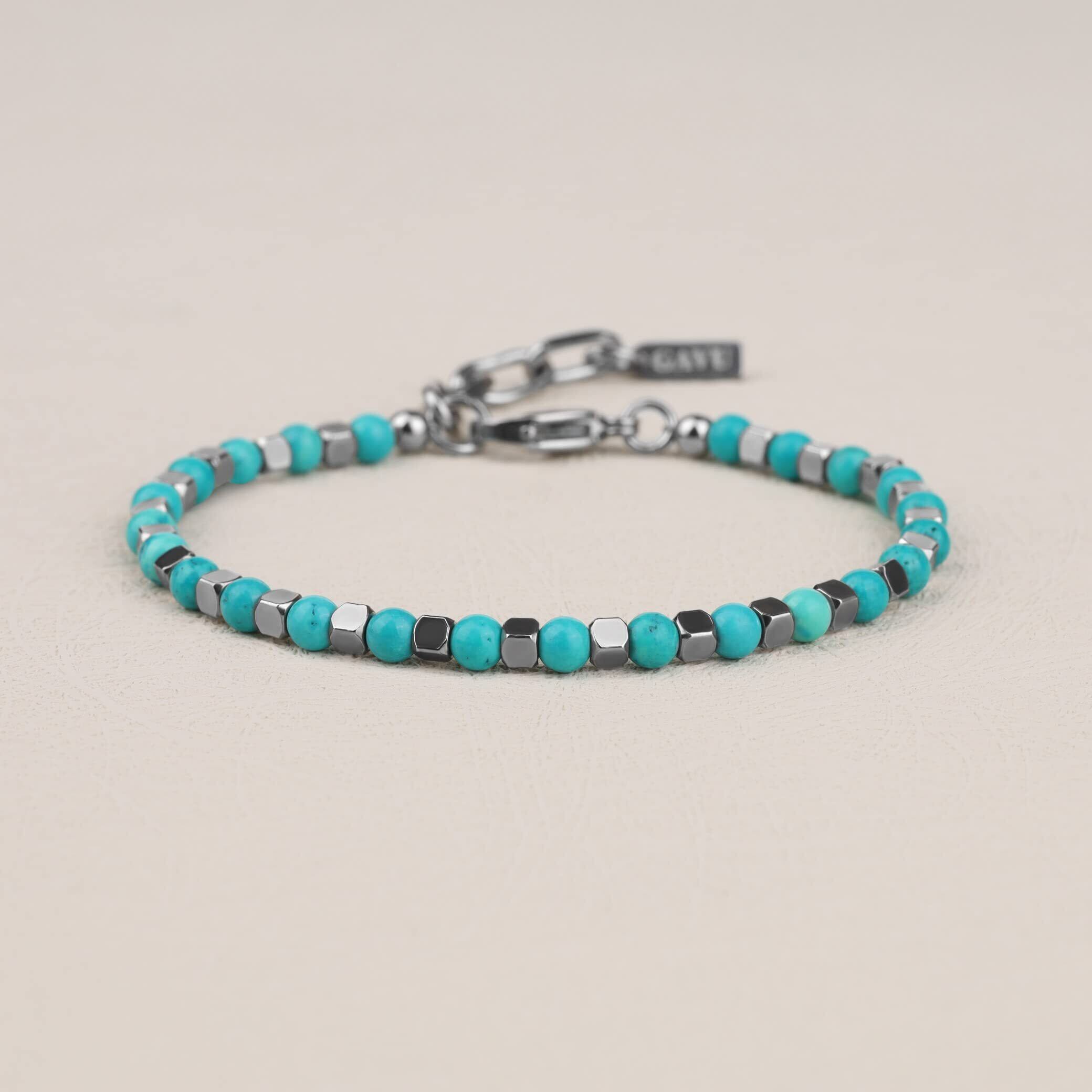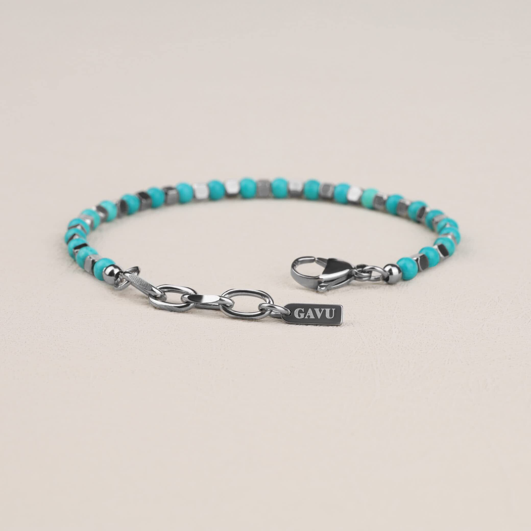 心を込めて作られたターコイズブレスレットで、細身のデザインで、単品で付けてもいいし、他のブレスレットとの重ね着けなどもオススメです