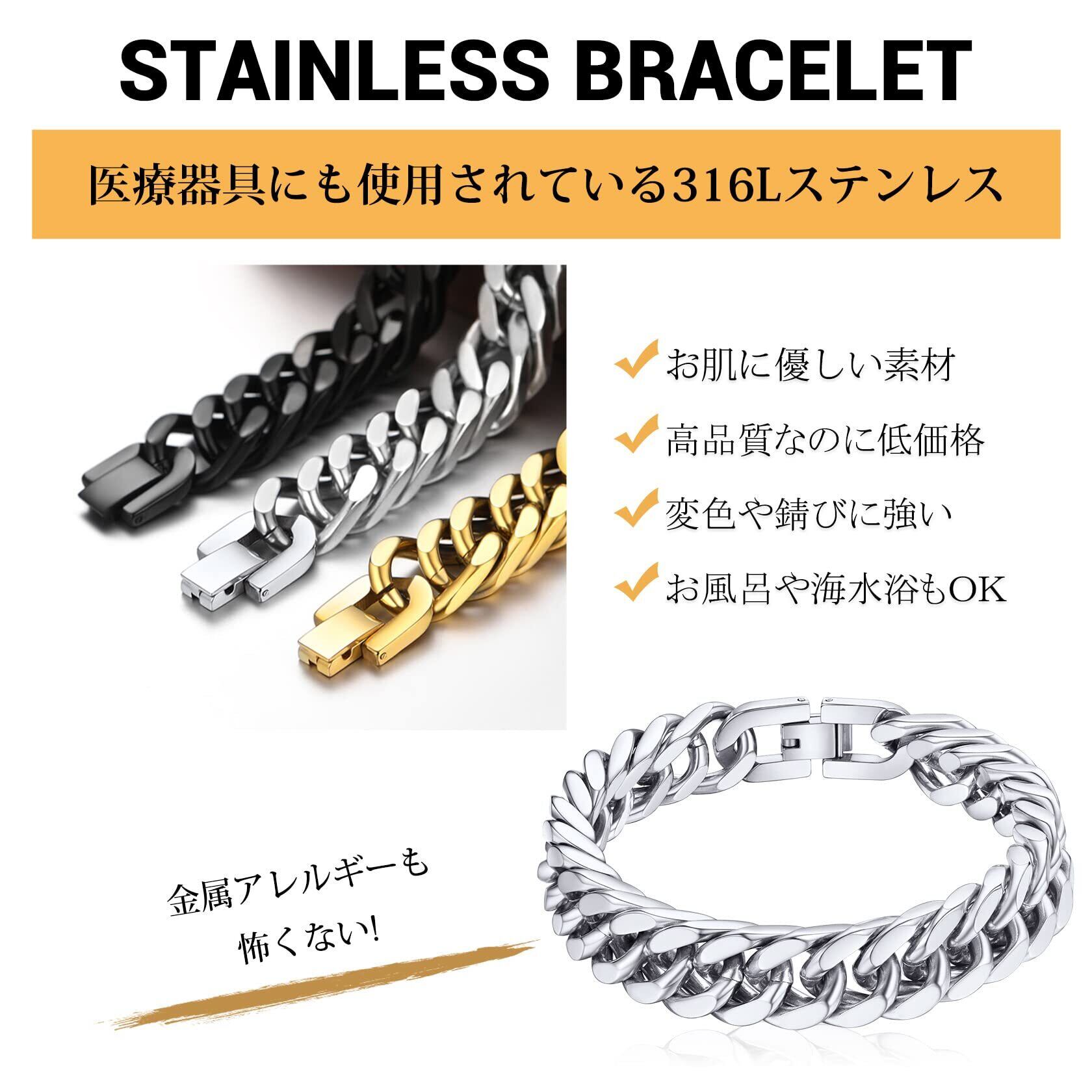 ブレスレット メンズ サージカルステンレス 喜平チェーン 金属アレルギー対応 つけっぱなし 中折れ式留め