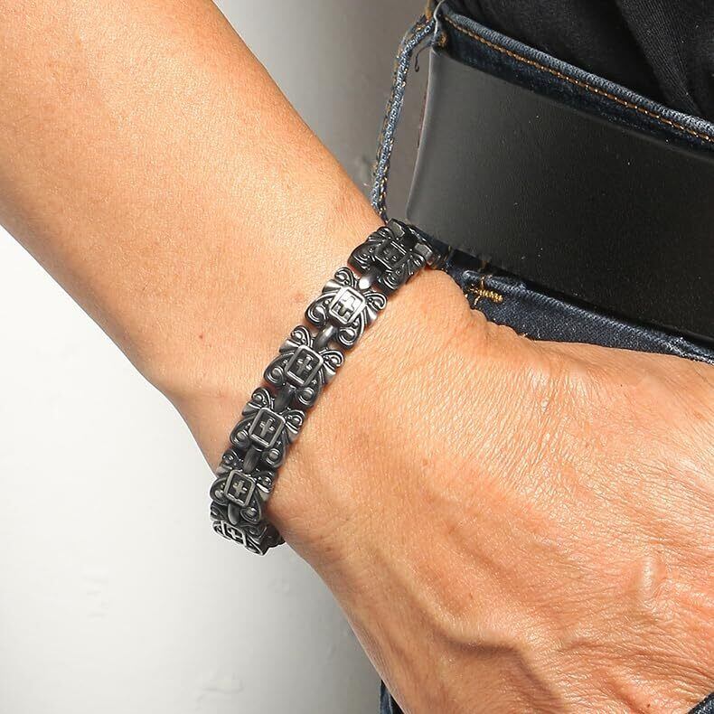 磁気ブレスレット メンズ 十字架 お守り 静電気除去 磁気 ヘマタイト ゲルマニウムブレスレット おしゃれ クリスマス プレゼント