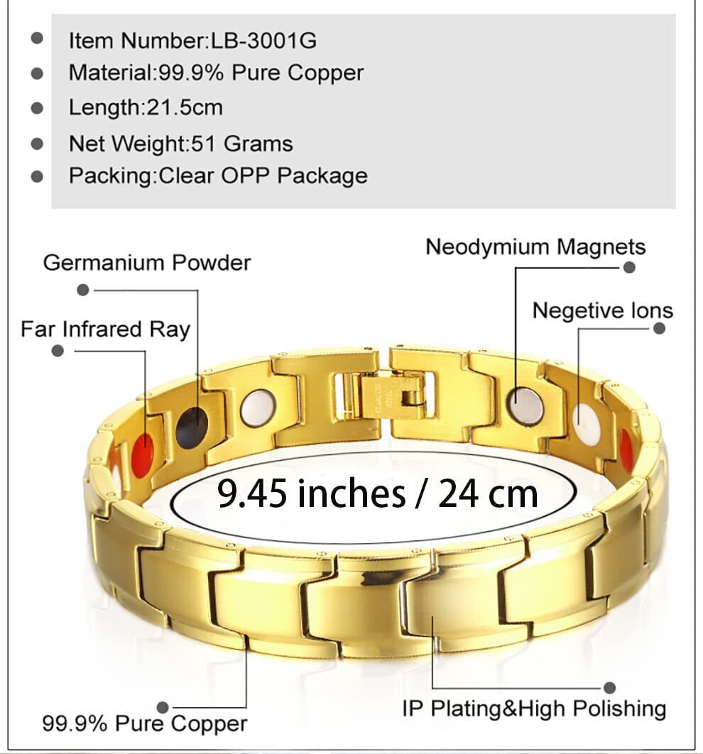 メンズ磁気アンクレット,足首(24.5cm / 9.5 "L),静電気を取り除き、取り外しツールと説明書付き