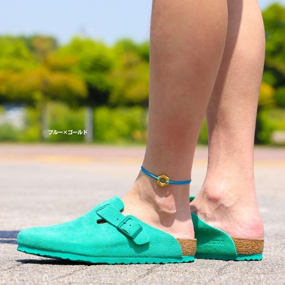 Color Code Anklet コードを引っ張るだけでサイズ調節可能 着けっぱなしOK! ステンレス素材 六角リングが デザインのアクセントになっています。