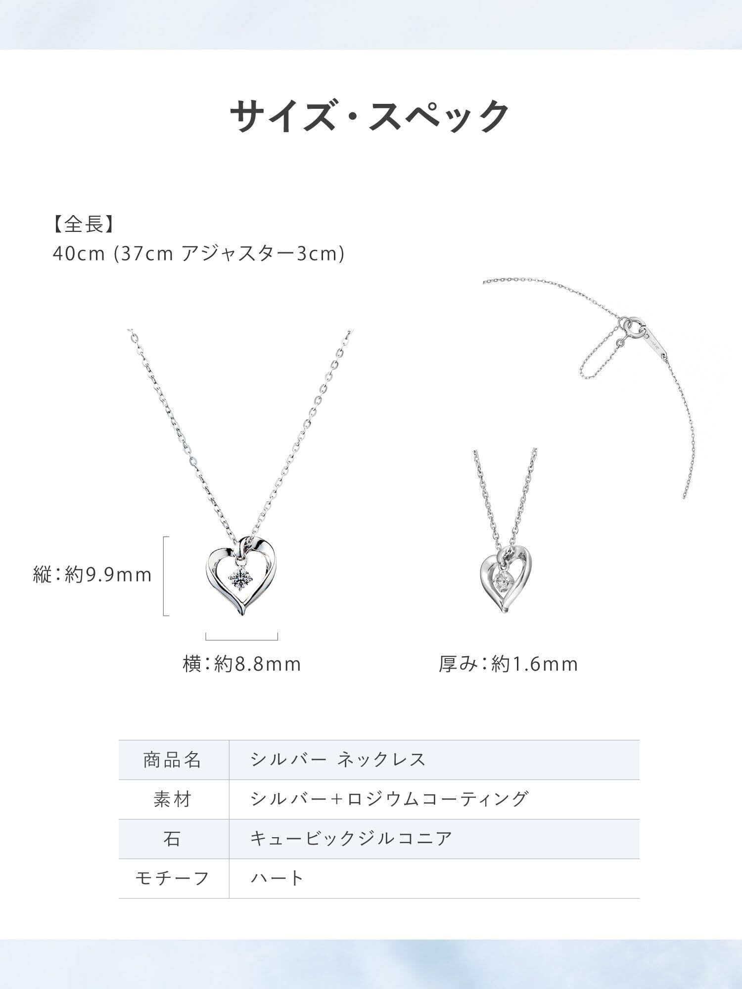 流れるようなラインが魅力的な、愛らしいハートモチーフのネックレス。キュービックジルコニアが揺れながら可憐にきらめきます。ロジウムコーティングの輝きも美しい、上品なデザインです。