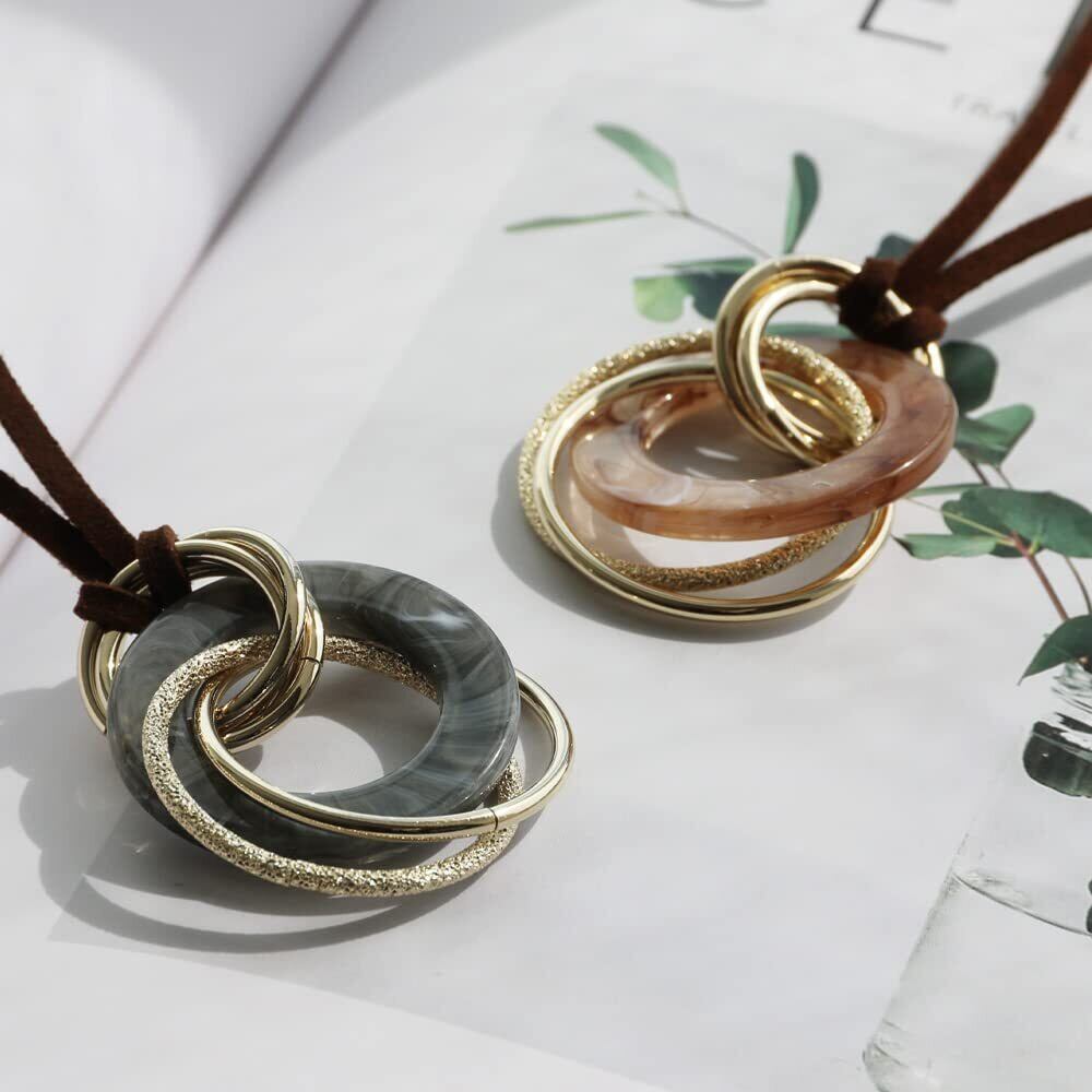 JewelVOX ネックレス レディース ロング シンプル スウェード紐 天然石風 おしゃれ 人気 大人 ロングネックレス