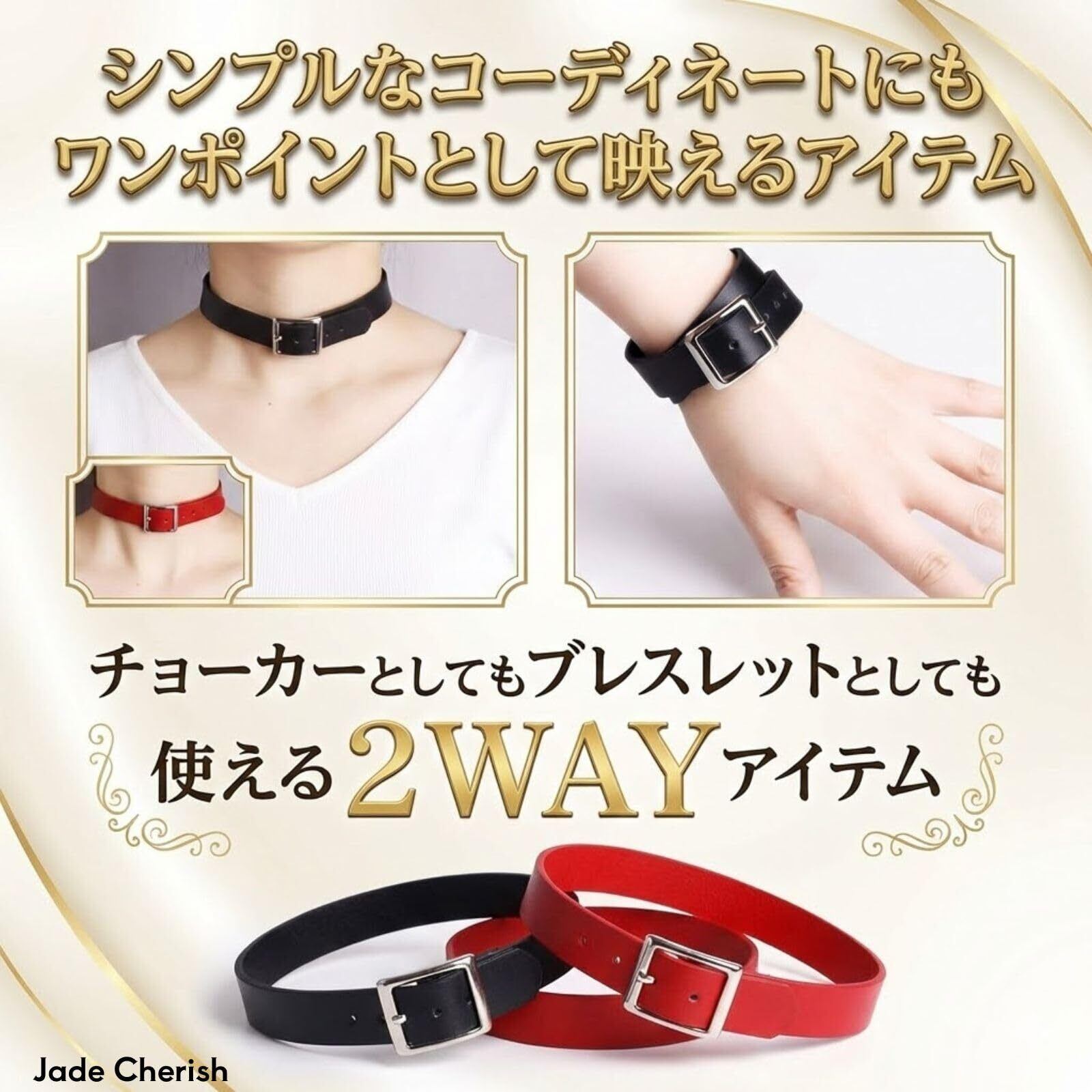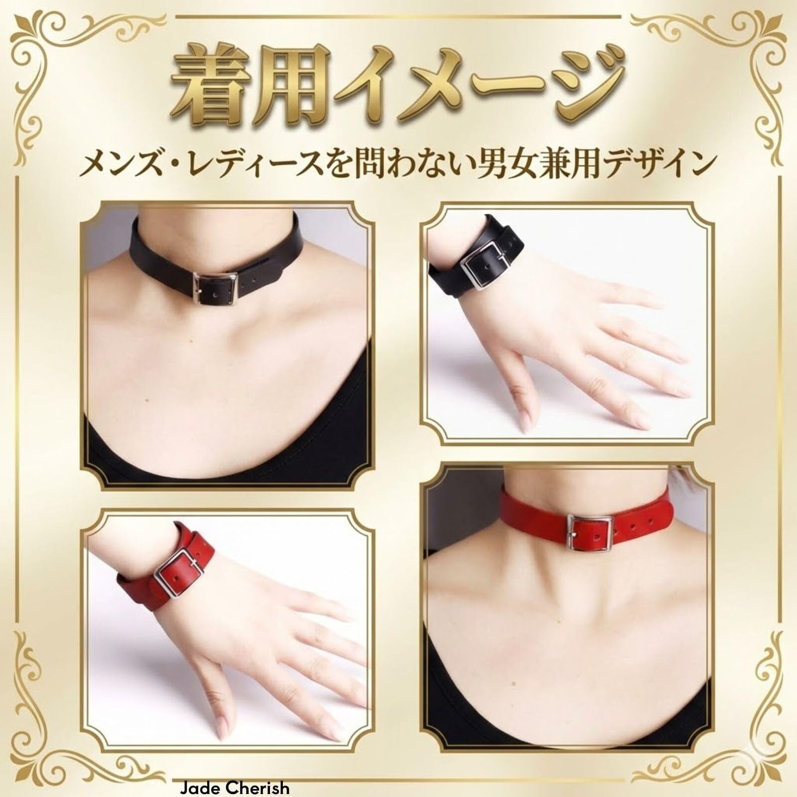 チョーカー PUレザー 男女兼用 5段階調節 シンプル ネックアクセサリー ブレスレット兼用 ブラック