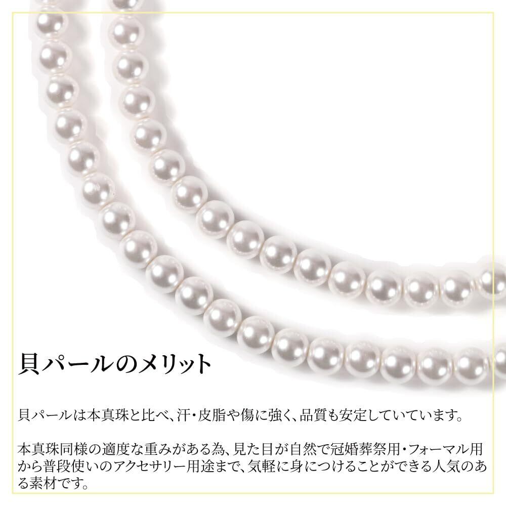 【高級貝パール】天然の貝殻を成形し、パールエッセンスを幾重にも重ねた高品質な人工パールです。上品な輝きと豊かなツヤ、6mmの存在感あるサイズは本真珠に劣らない真珠です。貝パールは汗や変色にも強く、フォーマルから日常使いまで幅広く活躍します。天然貝核の商品のため、本真珠と同様に生産過程で発生する多少の小キズ(えくぼや出っ張り)があるものがございます。あらかじめご了承ください。