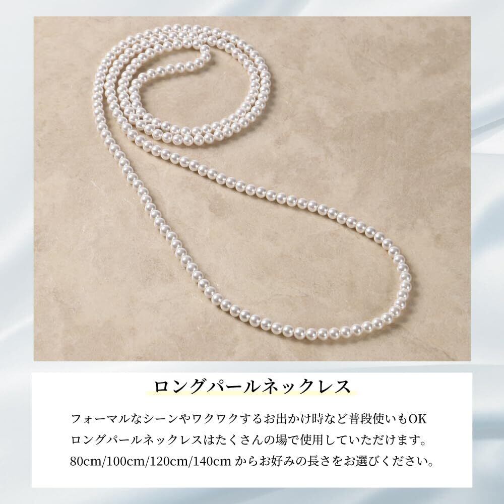 フォーマルなシーンやわくわくするお出かけ時など、普段使いもOK!ロングパールネックレスは多くのシーンでご利用いただけます。80cm、100cm、120cm、140cmからお好みの長さをお選びください。