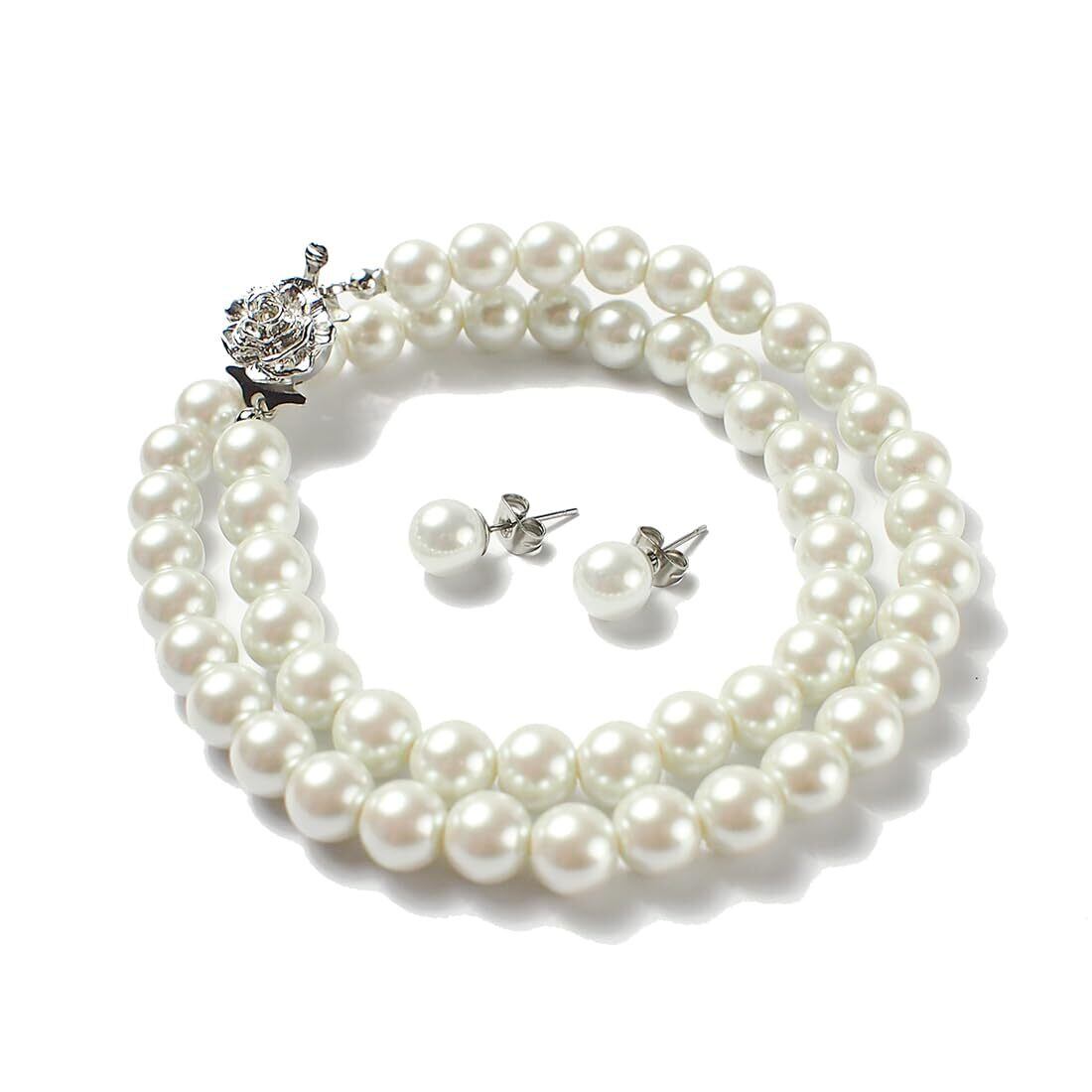 貝核にクリスタルガラス珠を使用し、その珠にパールエッセンスを数層塗り重ねた人工パールです。 冠婚葬祭や入園式入学式卒園式卒業式などフォーマルシーンに欠かせないパールネックレスとイヤリングのセットです。ベーシックなデザインのためフォーマルな装いから結婚式などの華やかなパーティシーン、普段使いまであらゆる場面でお使いいただけます。