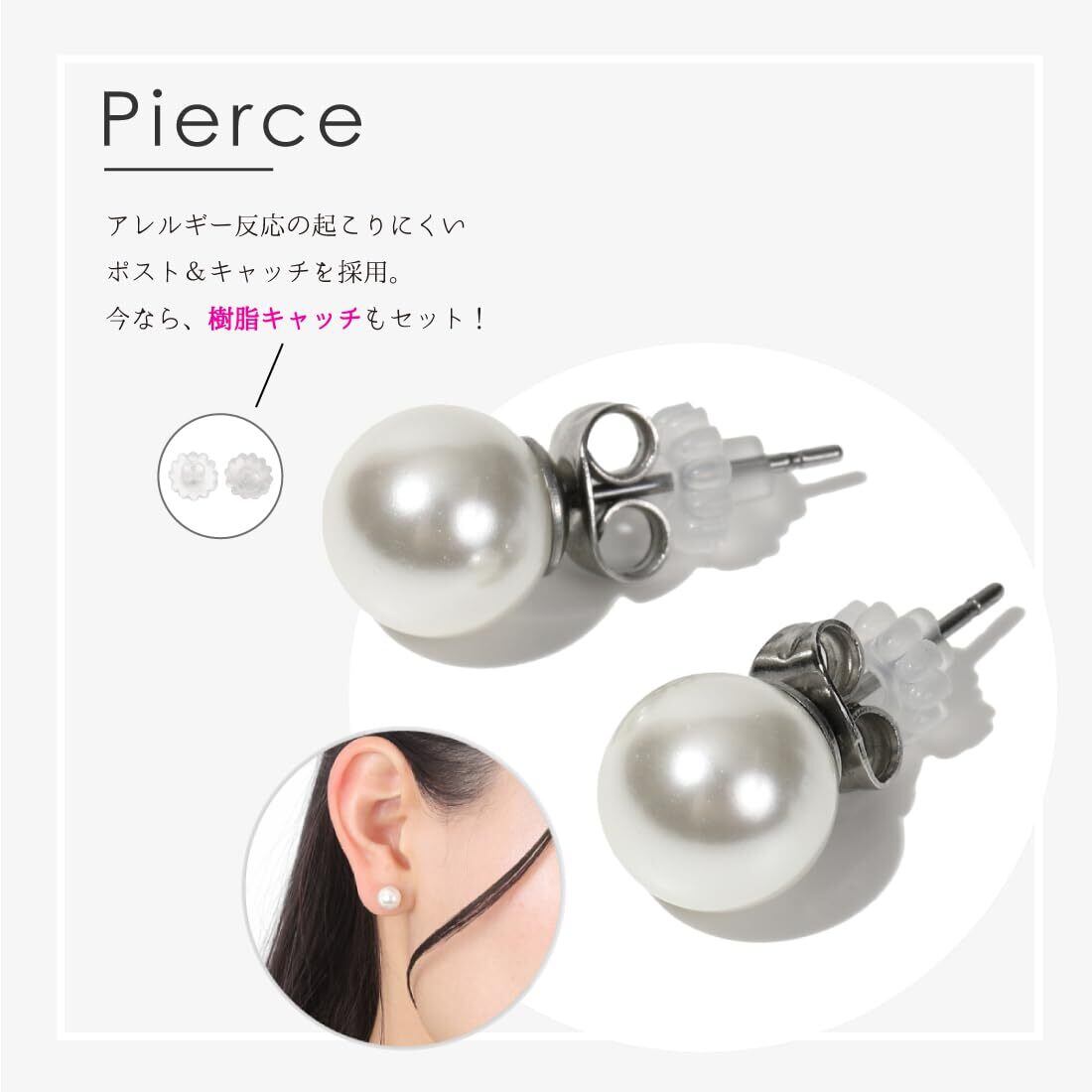 【サイズ】8mm珠パールネックレス:40cm~60cm パールピアス:サージカルステンレス パール珠サイズ8mm 【素材】クリスタルガラスパール(人工真珠) ネックレス留め具:真鍮(ロジウムメッキ) 樹脂キャッチ