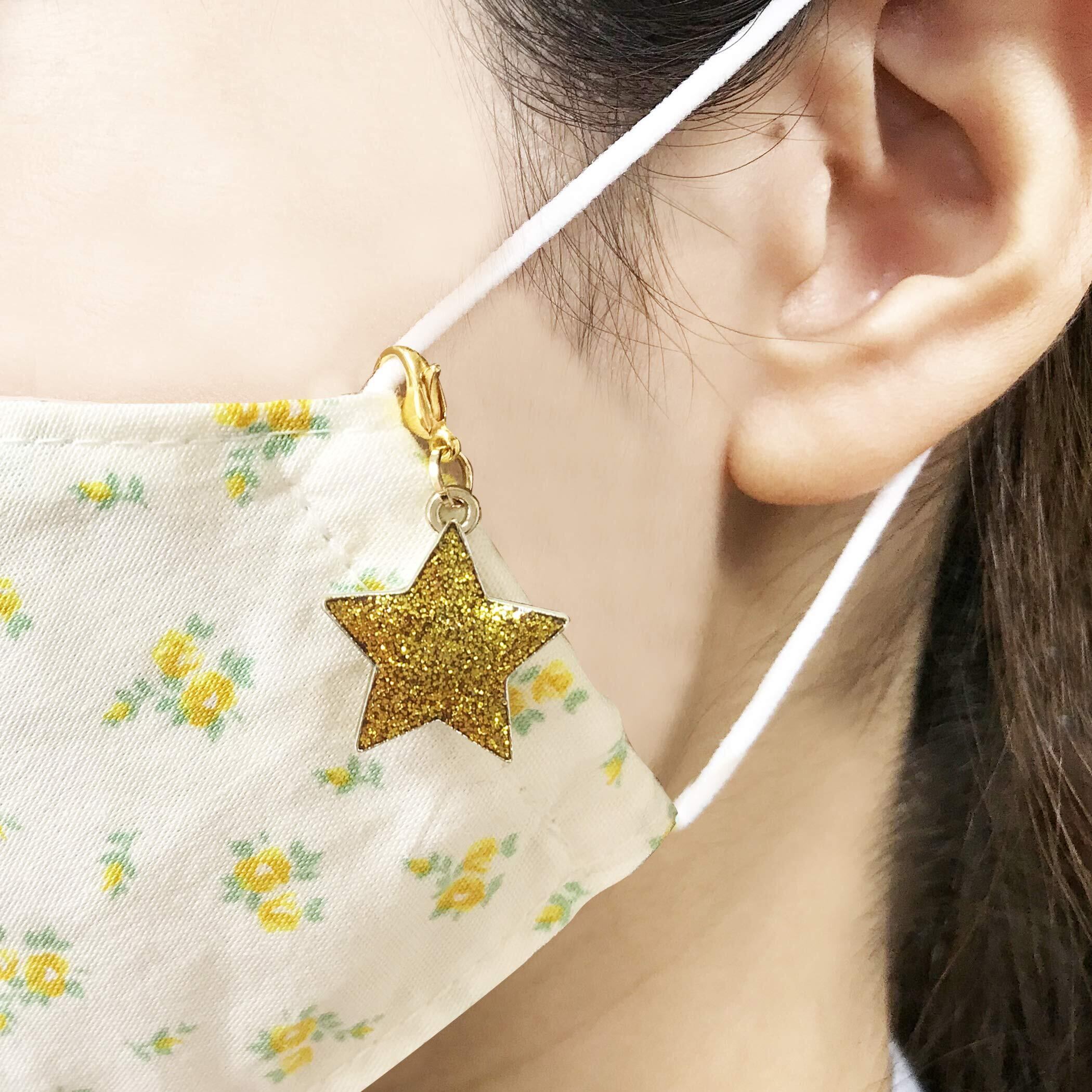 マスクチャーム アクセサリー キラキラ星 星 スター チャーム おしゃれ マスクアクセサリー プレゼント (ラメ入り ゴールド)