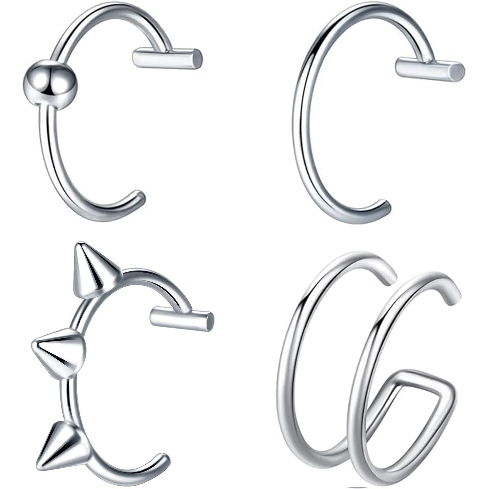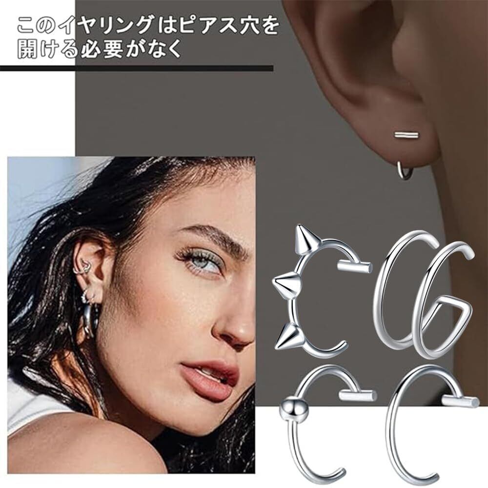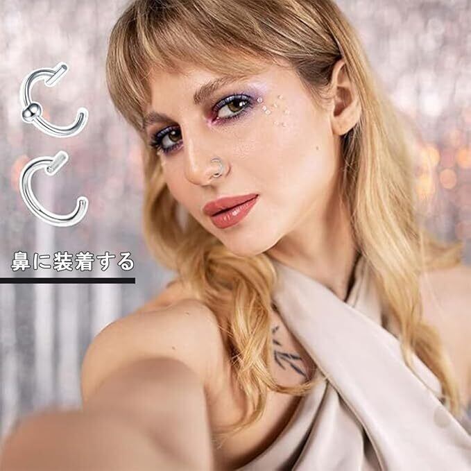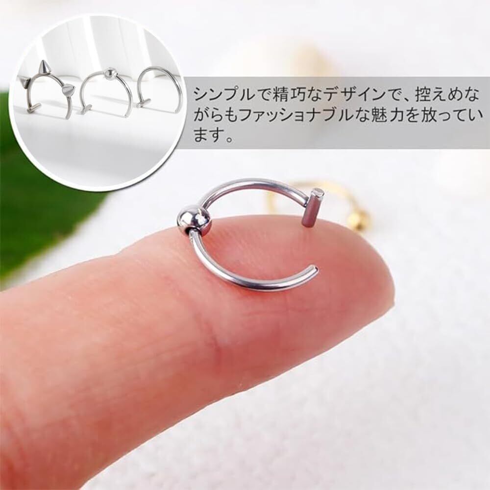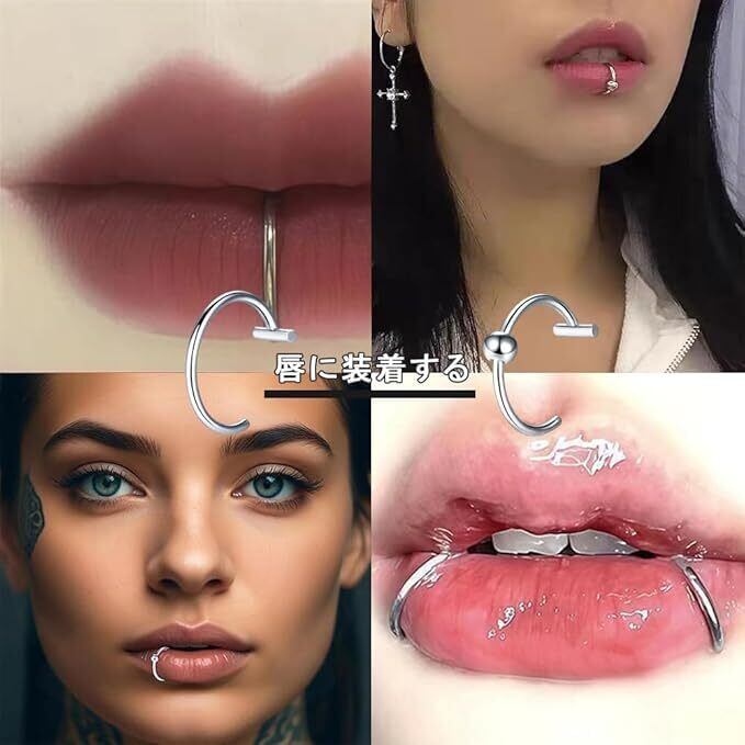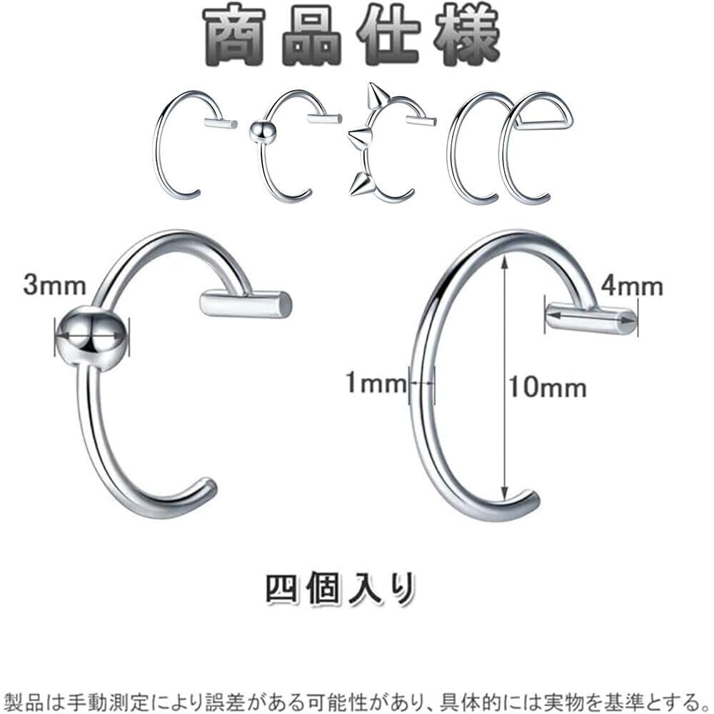 フェイクピアス 口ピ 鼻ピ 四個入り ピアス穴不要 ノンホールピアス リップ リング ステンレス 装着簡単 人気 ファッションアイテム