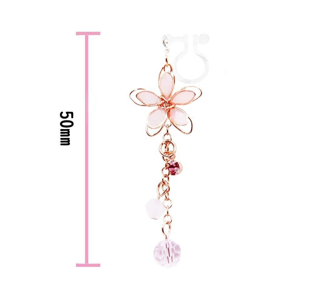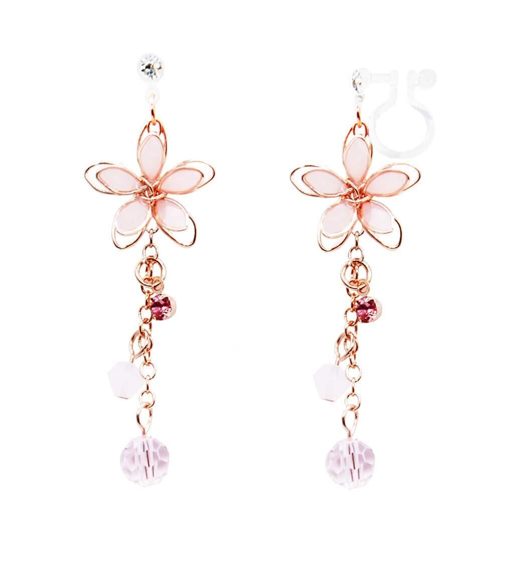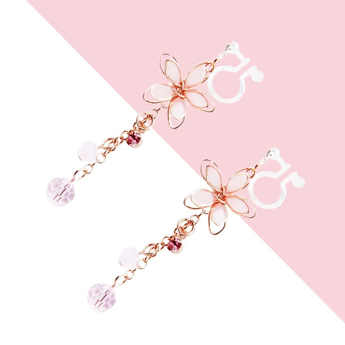 イヤリング ノンホールピアス 18k メッキ 花 揺れる 和風 レディース 人気 (ピンク樹脂 イヤリング)
