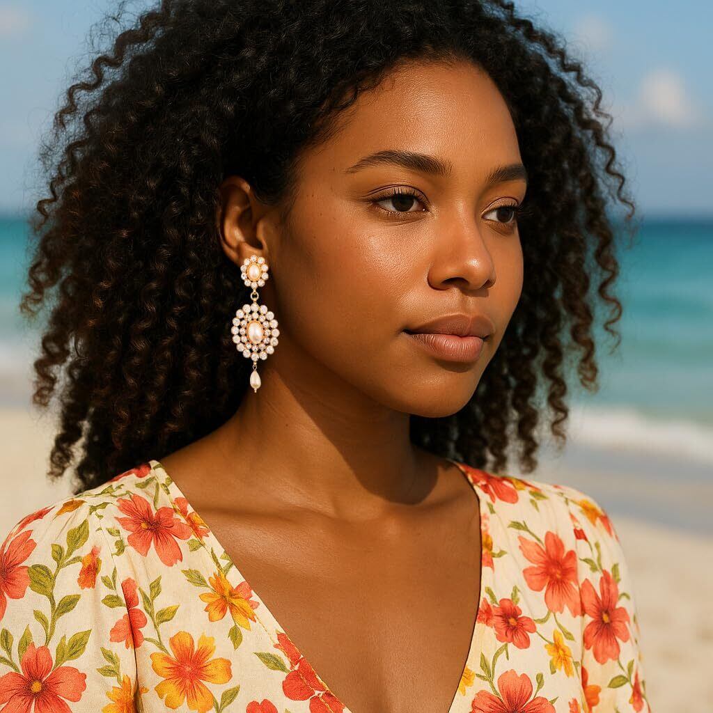 Touchstone "ハリウッド グラマー オスカーコレクション" インディアンフェイクパールとホワイトクリスタル 輝くブライダルジュエリー シャンデリアイヤリング ゴールド調。 エクストラロングイヤリング。 長さ3.25インチ 仕様:イヤリング重量(シングル)18g。 イヤリングの長さ3.25インチから垂れ下がるまでです。 イヤリングの幅1.25インチ。