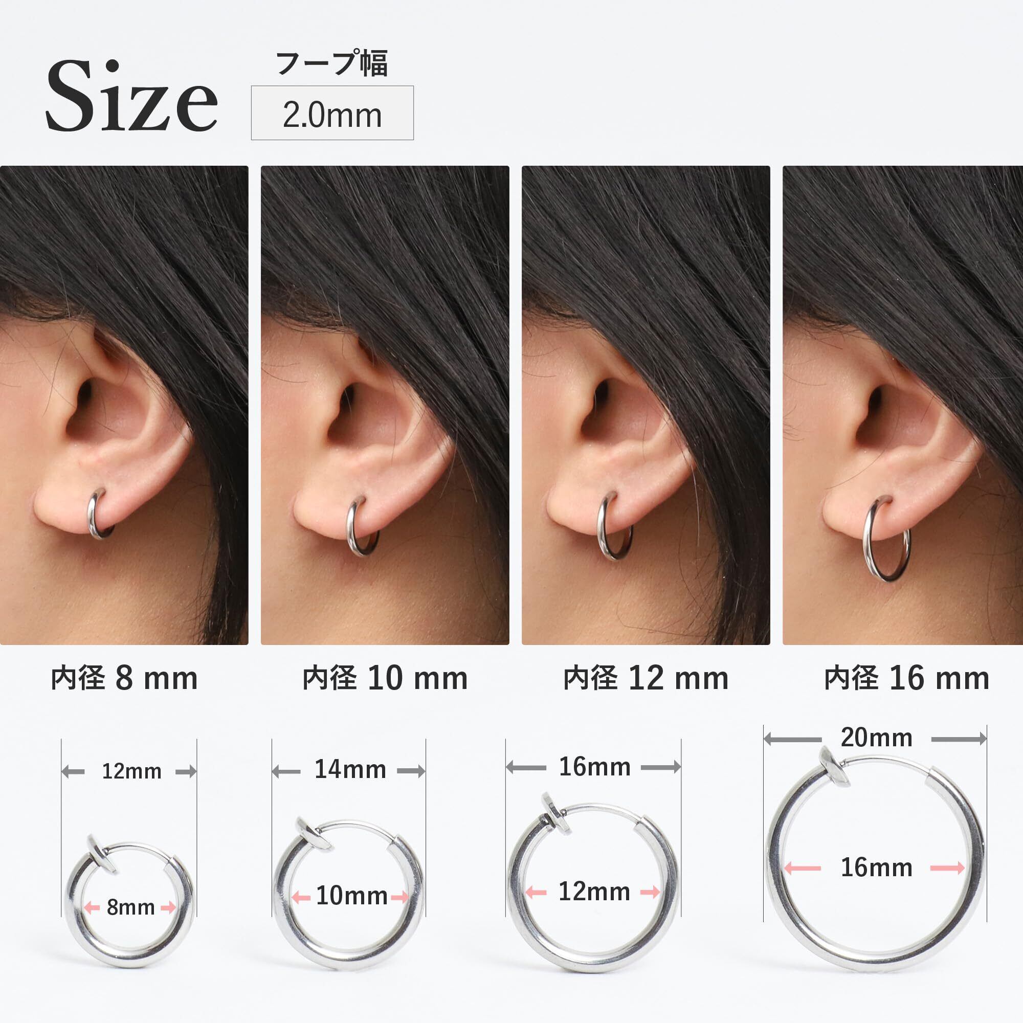 リング外径:12mm 内径:8mm フープ幅:2.0mm ピアス重さ:0.5g/1個