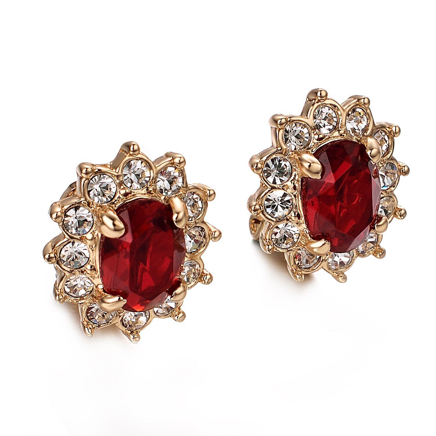 Yoursfs ルビー サファイア エメラルド ピアス レディース ファッション クリスタル ピアス キラキラ 18k ピンクゴールド 結婚式 イヤリング 誕生日 プレゼント