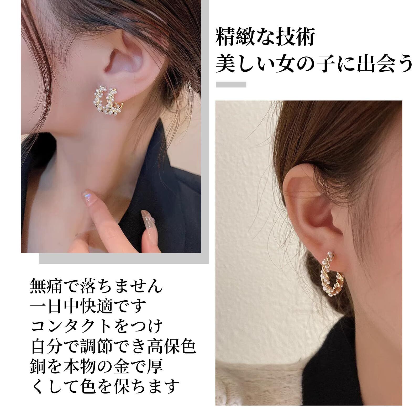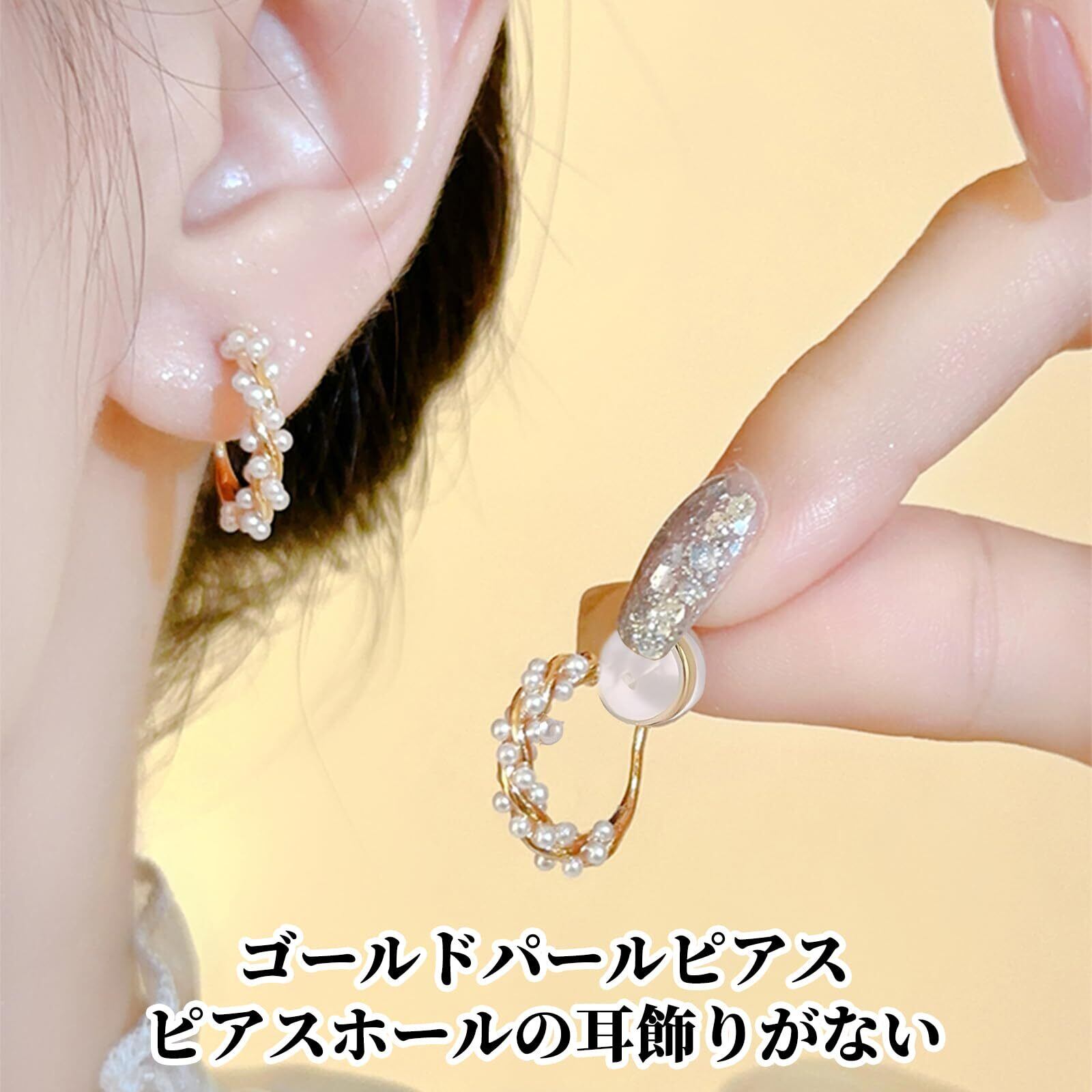 イヤリング レディース かわいい ノンホールピアス イヤーカフ フープピアス ゴールドメッキ 痛くないイヤリング パール 穴なし 両耳セット 人気 結婚式 記念日 プレゼント