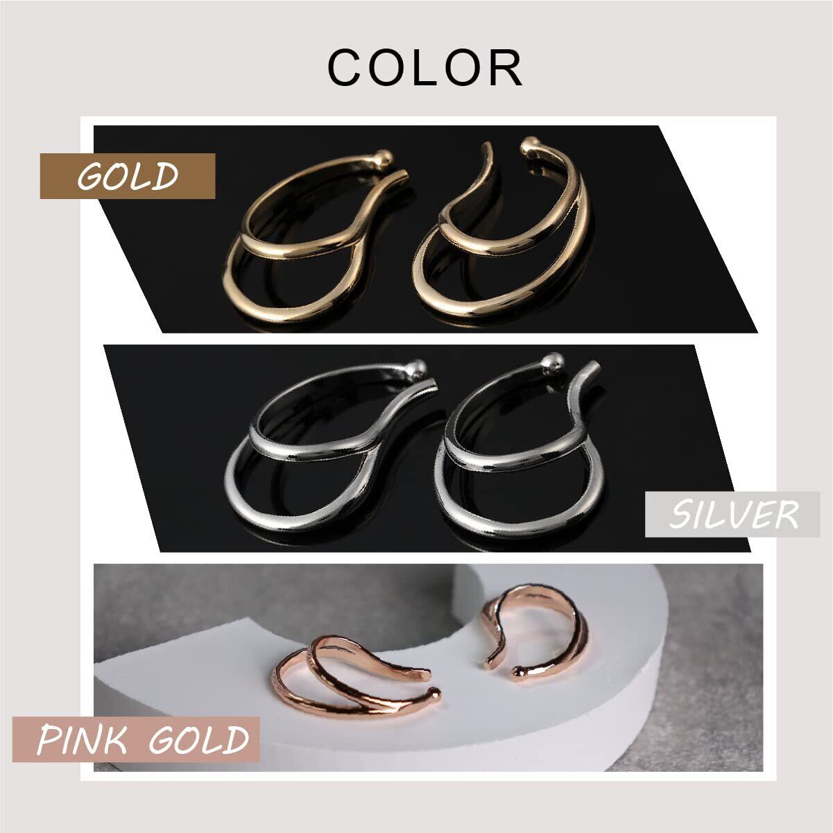 イヤーカフ イヤーカフス イヤカフ イヤリング 大ぶり 金属アレルギー対応 ダブルライン 左右セット ゴールド/シルバー/ピンクゴールド