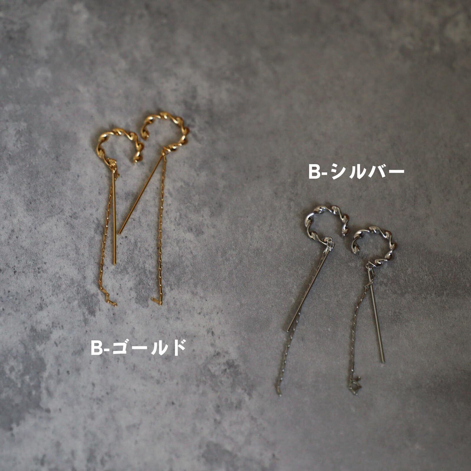 定番のフープシルエットのイヤーカフにスネークチェーンを垂らしたロングシルエットのアイテム。
