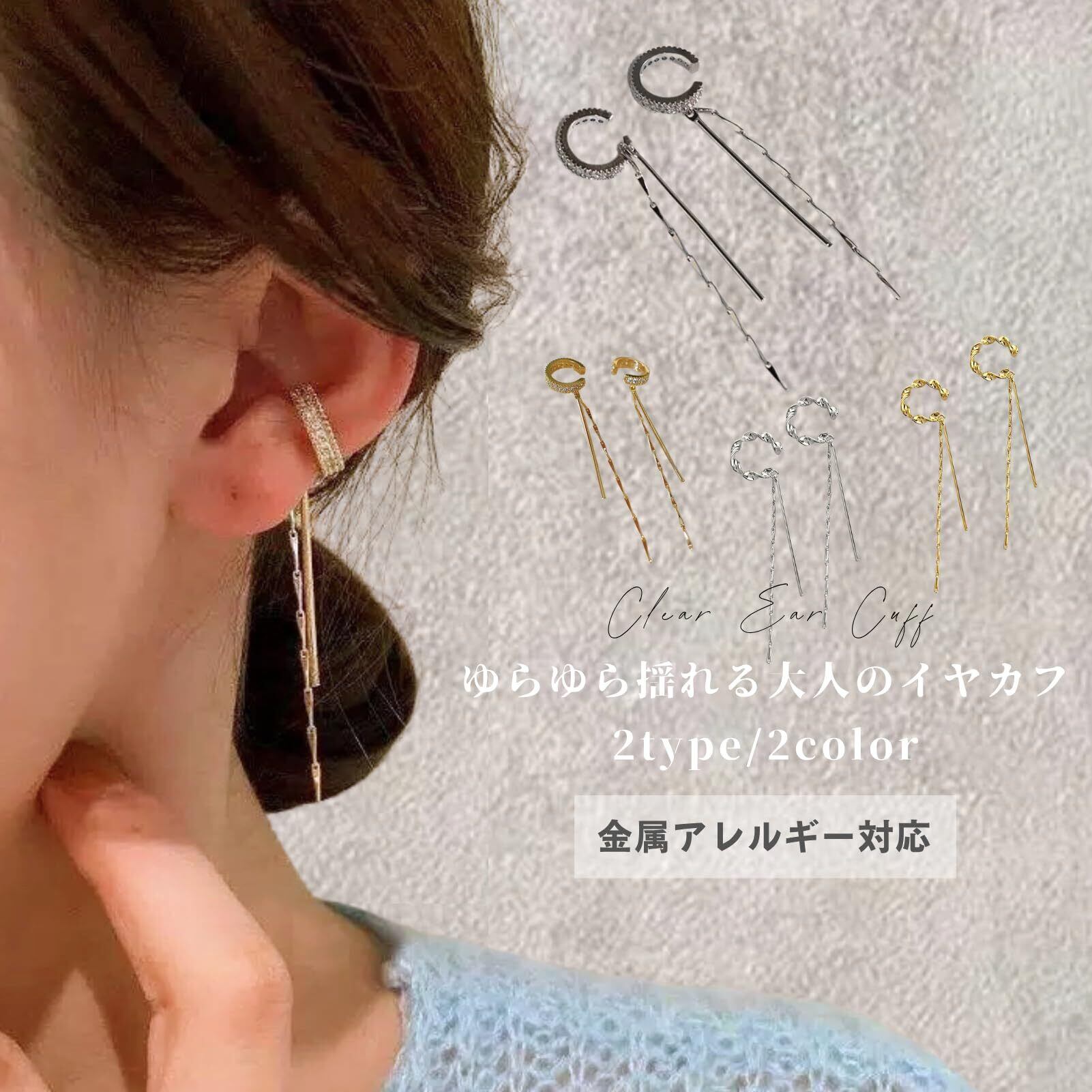 Moonstan イヤーカフ レディース 人気 ロング チェーンイヤーカフ 金属アレルギー対応 ゴールド シルバー 揺れる 女っぽい