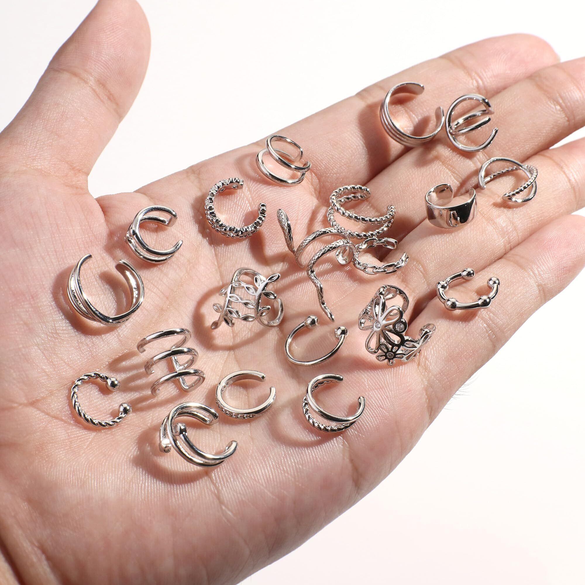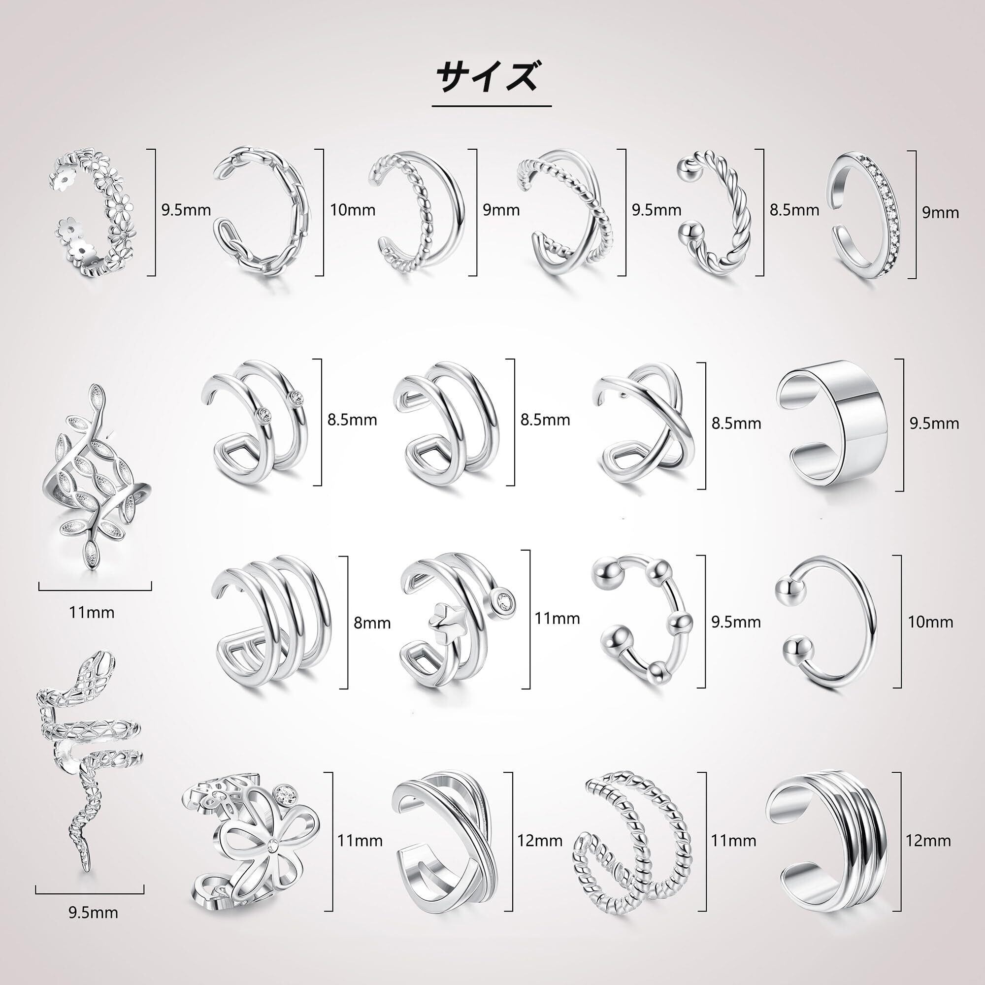 【女性用イヤーカフイヤリング】これらのイヤーカフは非ピアスカフイヤリングで、ほとんどの人の耳軟骨に適しており、軽量で快適に着用できます。特定のサイズは写真で見つけることができます。 注意: 一部のイヤークリップは調整可能なイヤークリップであり、その他は調整できない厚いイヤーカフです。詳細については画像を確認してください。調整可能なイヤリングは「調整可能」であることに注意してください。 他のイヤリング ジュエリーと一緒に軟骨に着用して、自分のスタイルを作成することもできます。