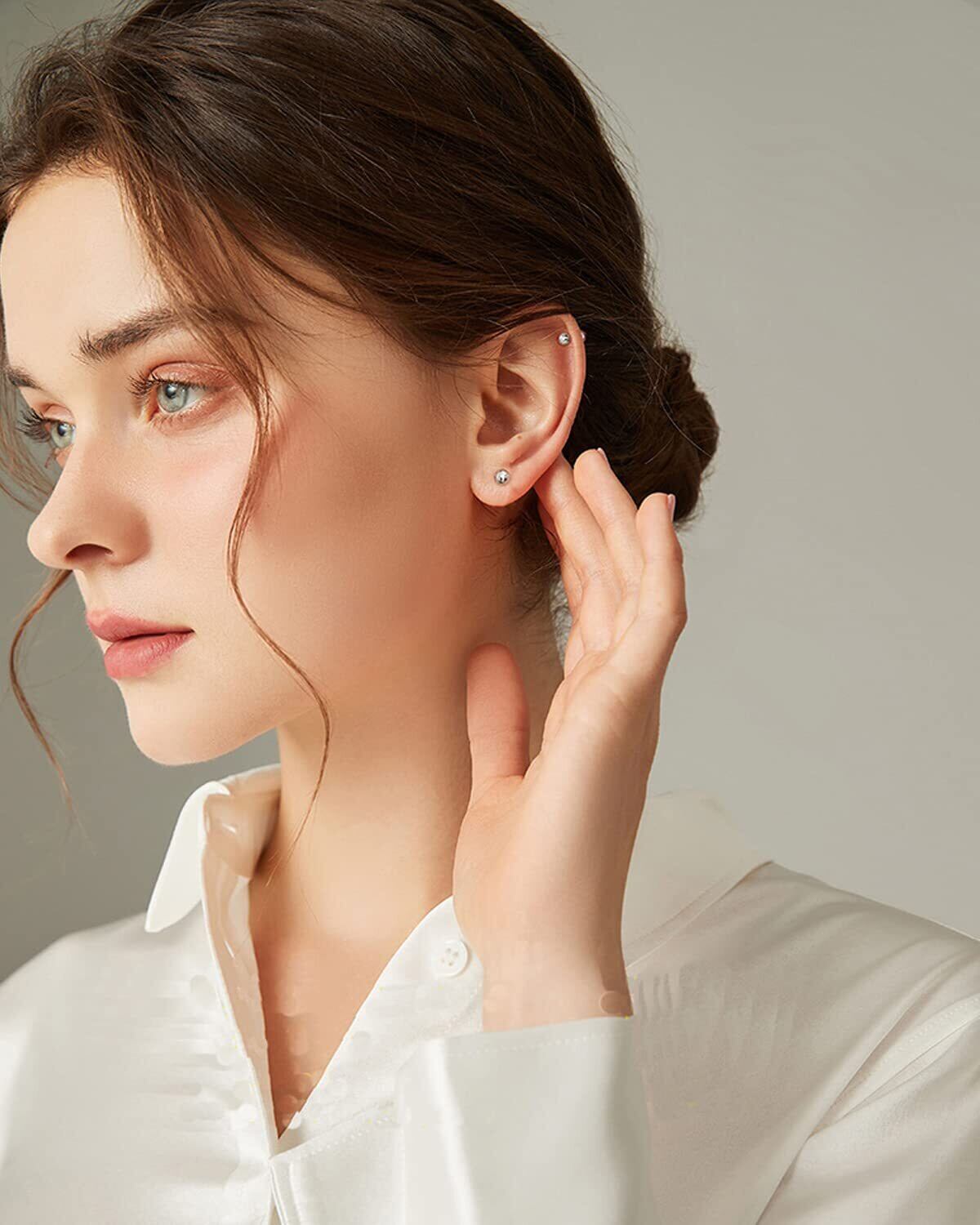 【シンプルなマグネットピアスセット】ピアスの表と裏はボールデザインなので、シンプルでおしゃれなデザインで、耳元をさり気なく美しくみせてくれます。前から見ても後ろから見ても違和感なくて、普通のピアスと変わらないストレートバーベルを付けているような見た目です。