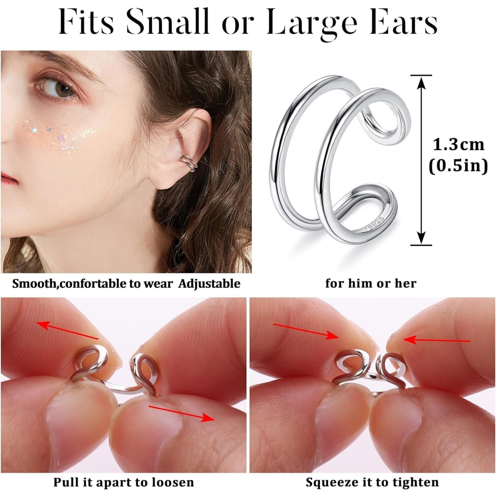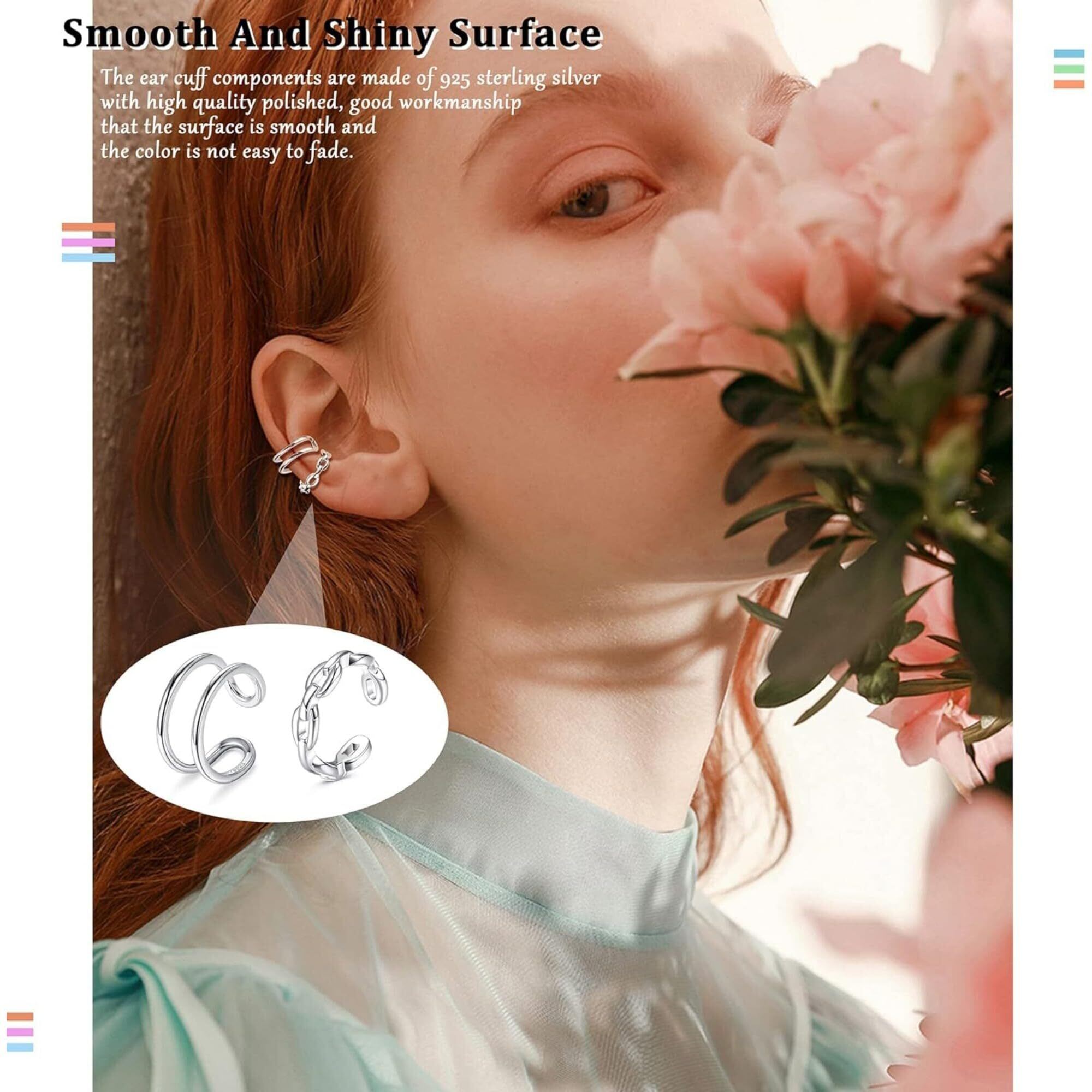 人気アイテムさまざまなスタイルのカフイヤリング4個、上品なピアスなし軟骨クリップオンラップイヤリングセットをお届けします。クリスクロスイヤーカフ、ダブルイヤーカフ、クラシックフープイヤリングカフ、シンプルな2列ラップ。個別に着用したり、並べて着用したり、お好みの方法で着用でき、あなたの耳にユニークな魅力を加えます。