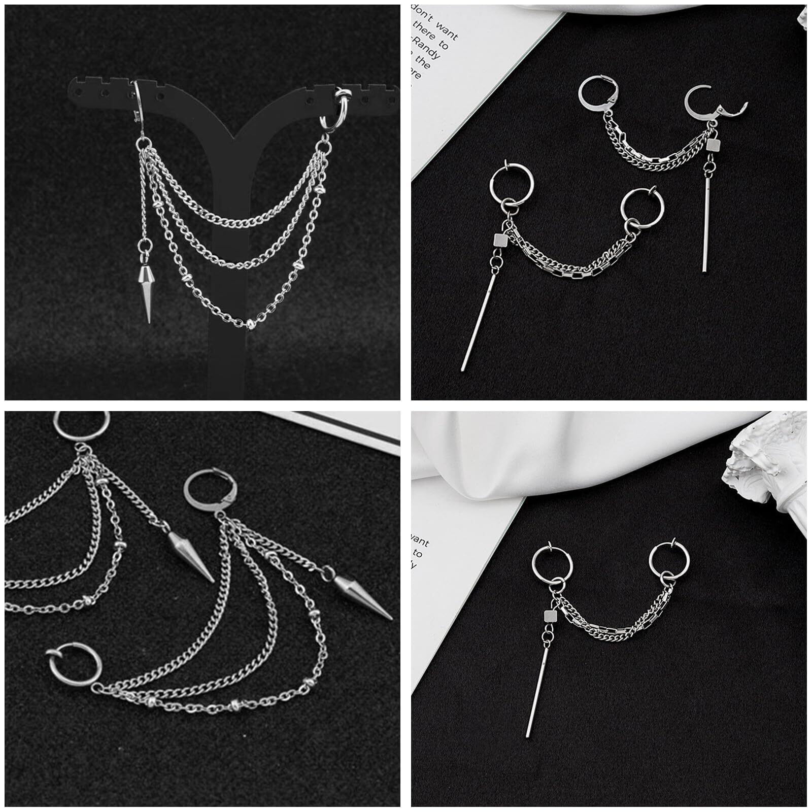 Doyime フェイクピアス イヤーカフ チェーン 垂れ下がり チェーン 耳たぶ 軟骨 メンズ レディース ノンホール イヤリング 金属アレルギー対応 ピアス穴不要 韓国 ファッション 片耳用