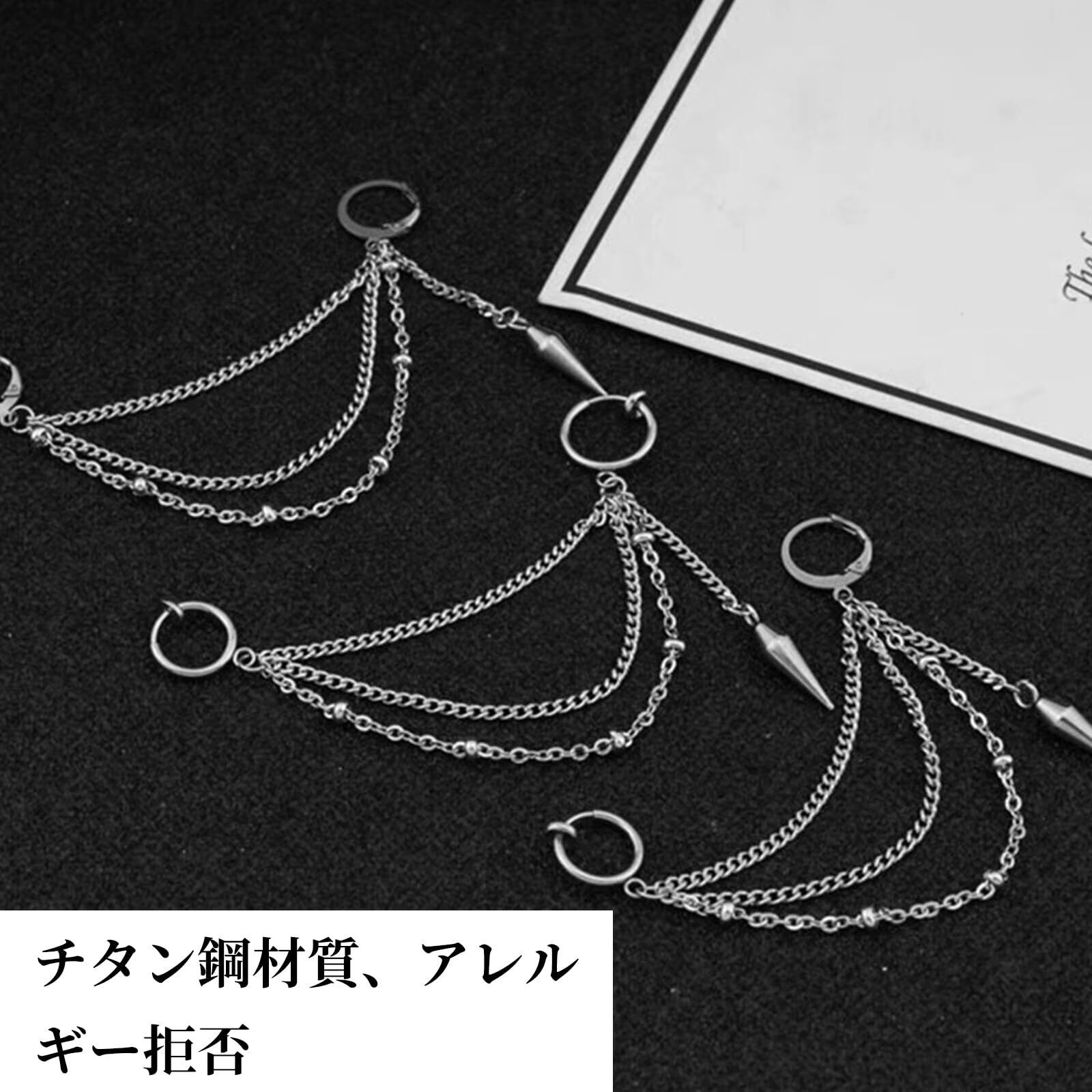Doyime フェイクピアス イヤーカフ チェーン 垂れ下がり チェーン 耳たぶ 軟骨 メンズ レディース ノンホール イヤリング 金属アレルギー対応 ピアス穴不要 韓国 ファッション 片耳用 | 毎日発送✿はなまる