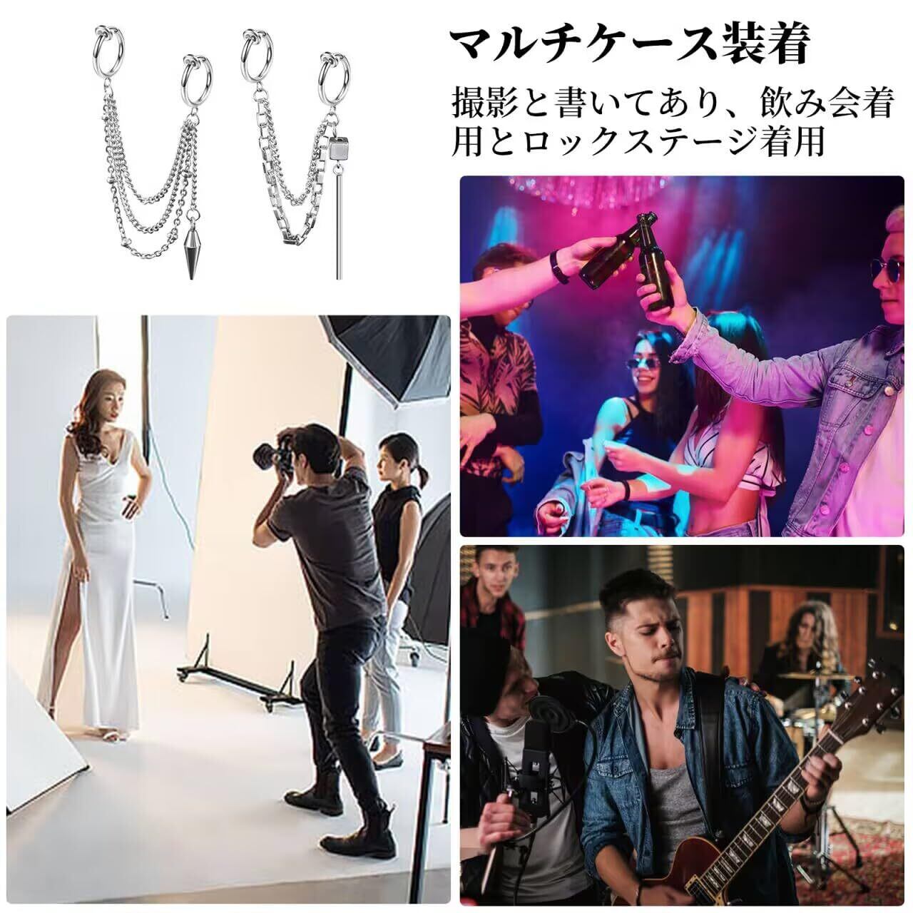 【耳穴なしデザイン】このフェイクピアスはピアスなしのデザインで、耳穴がなくても簡単に着用できます。 ピアスを開けていない人も、いろいろなスタイルに挑戦したい人も、ファッション?アクセサリーの魅力を楽しむことができます。