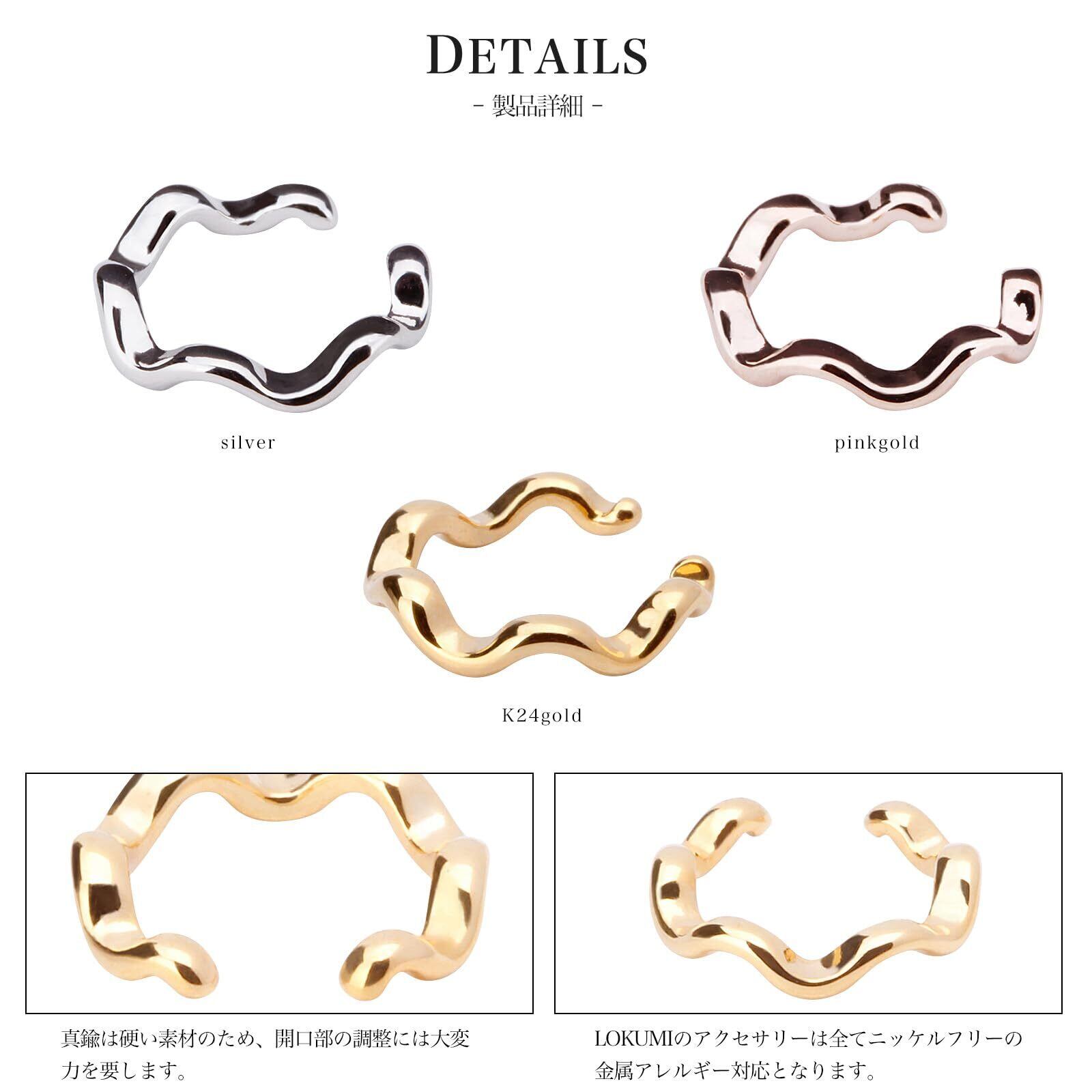 LOKUMI イヤーカフ 金属アレルギー対応 3カラー 日本製 シルバー ゴールド ピンクゴールド レディース 金メッキ メンズ コーティング シンプル ニュアンス ウェーブ 人気 ギフト プレゼント lmec-20
