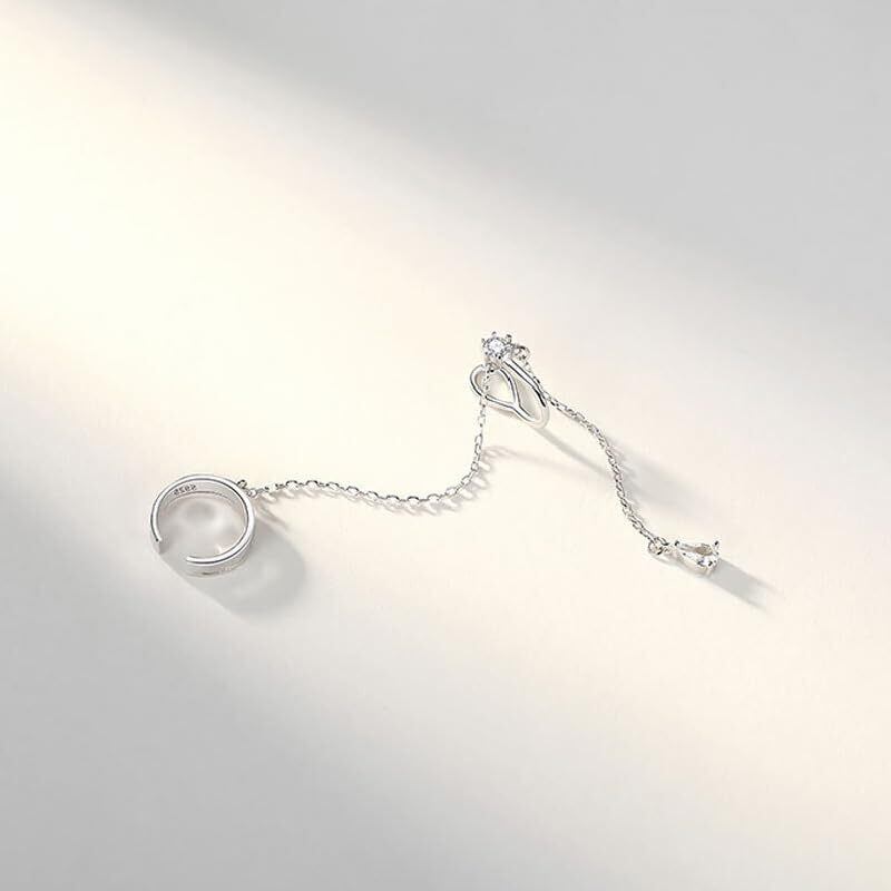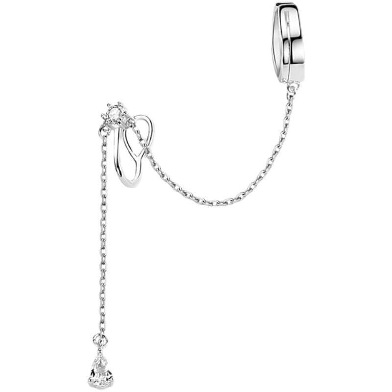 【 人気のデザイン 】片耳用たれさがりイヤーカフチェーン。まるで本物のピアスの様に見えるので、仕事でピアスができない方・穴を開けるのに迷っている方・まだ穴を開けていない学生さんへもオススメです。