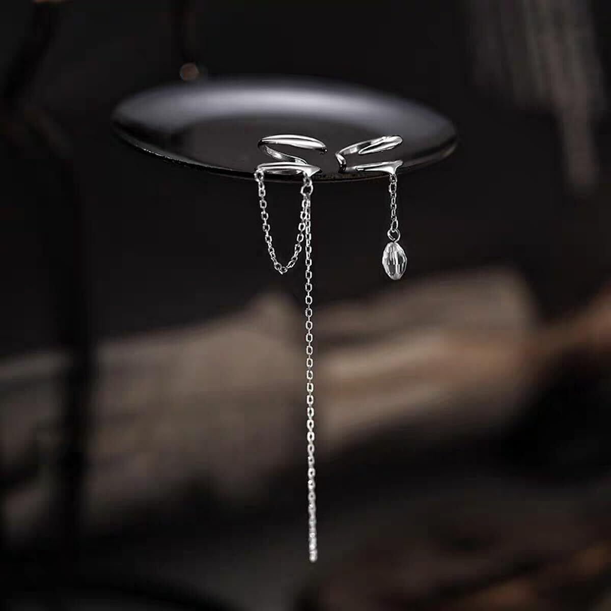【左右非対称のデザイン】: 左右非対称のイヤーカフで、揺れるチェーンデザインが特徴的なスタイリッシュなアクセサリー、歩くたびに揺れ動きます。優雅でスタイリッシュ、軽やかで存在感があります。