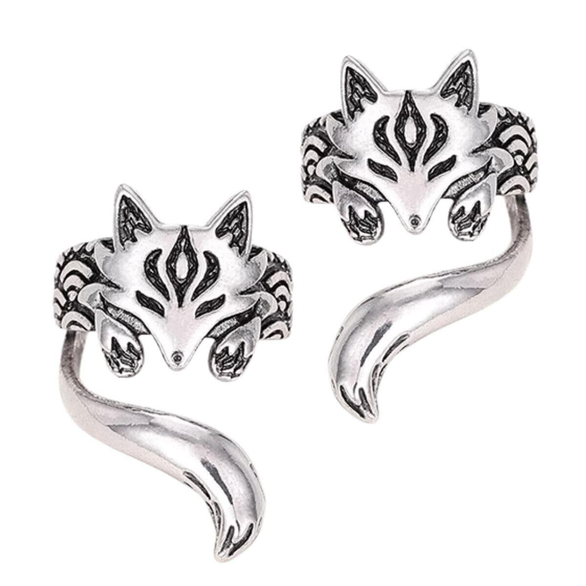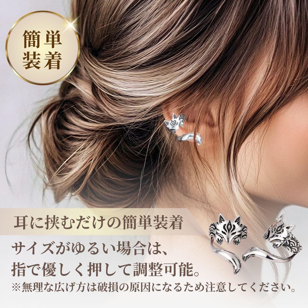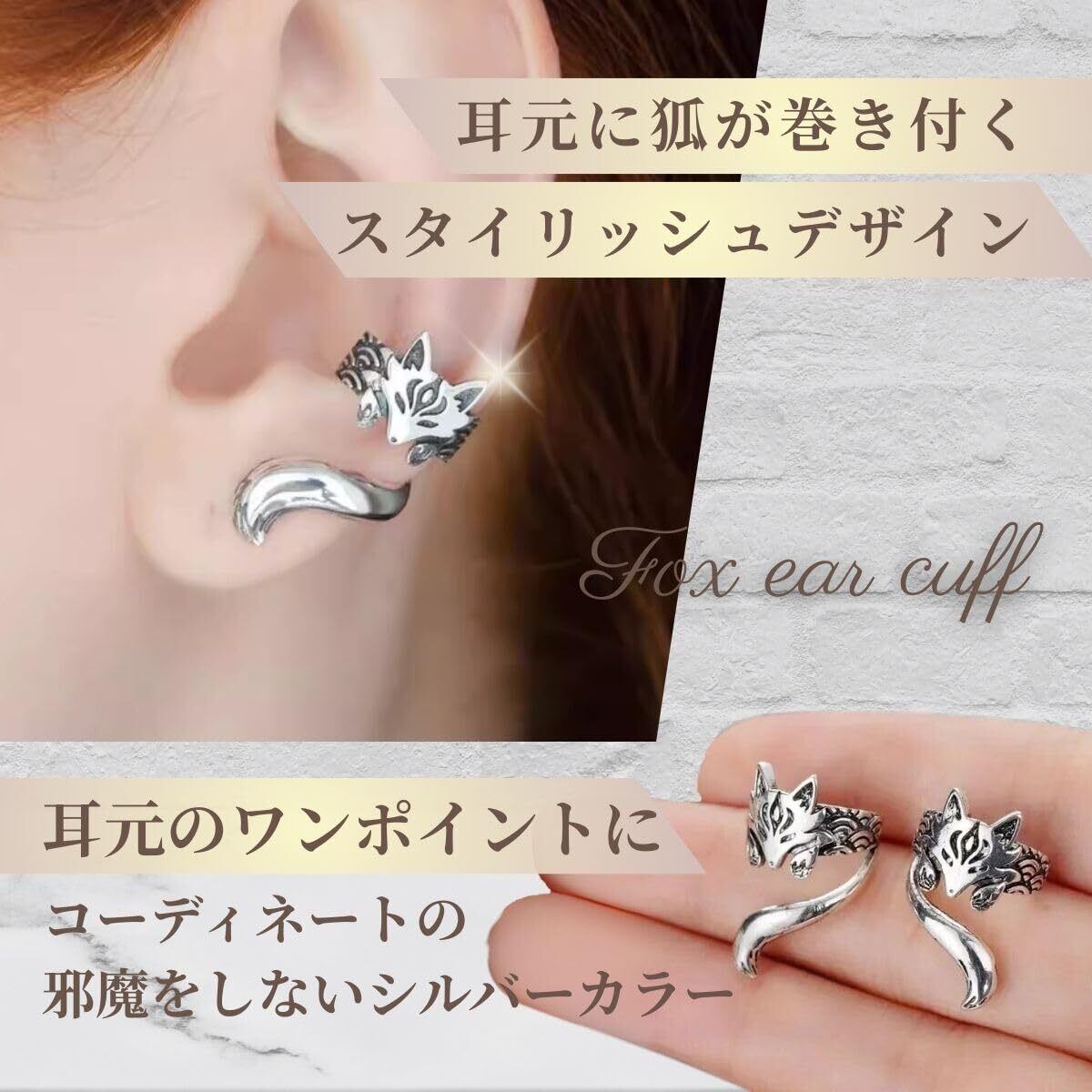 SALUDABLE イヤーカフ 狐 キツネ イヤリング メンズ レディース フェイクピアス 左右ペア