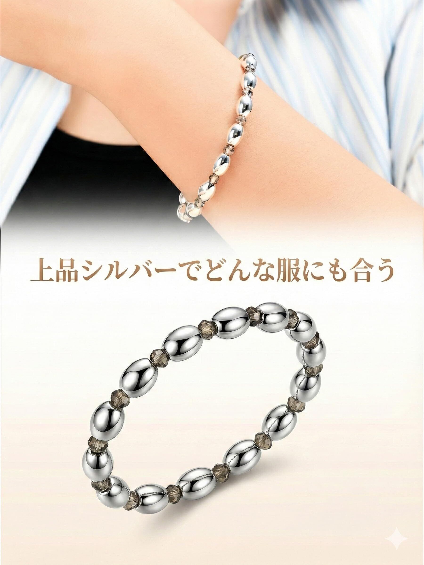 CCopan 磁気 ブレスレット レディース メンズ 静電気 除去 防止 人気 バングル アンクレット アクセサリー ファッション プレゼント マグネット 国内ブランド (シルバストーン)