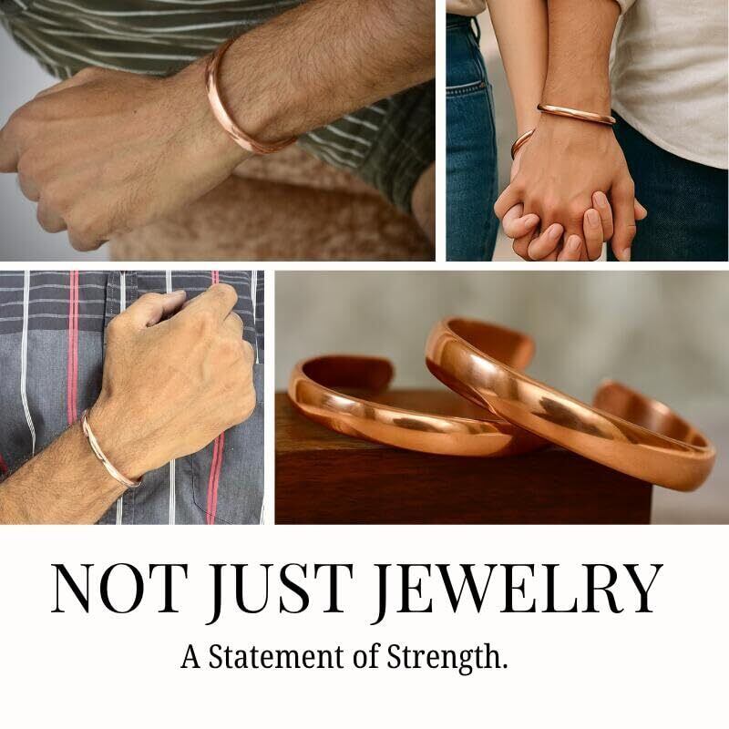 高純度99%以上の純銅を採用 銅メッキや合金ではなく、99%以上の高純度銅を使用。ニッケルやクロームを含まないため、安心して肌に触れることができます。銅特有の温もりと輝きをお楽しみください。