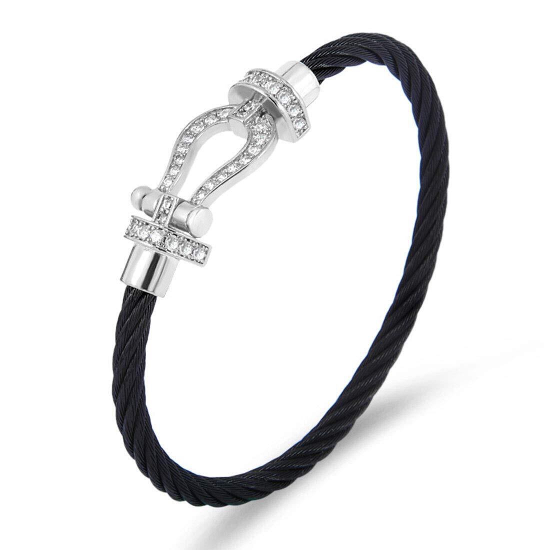 【ブレスレットサイズ】周長約180㎜ 素材:ステンレス ジルコニア カッコいい 男女兼用 ホースシュー馬蹄バングル 黒銀 ブレスレット