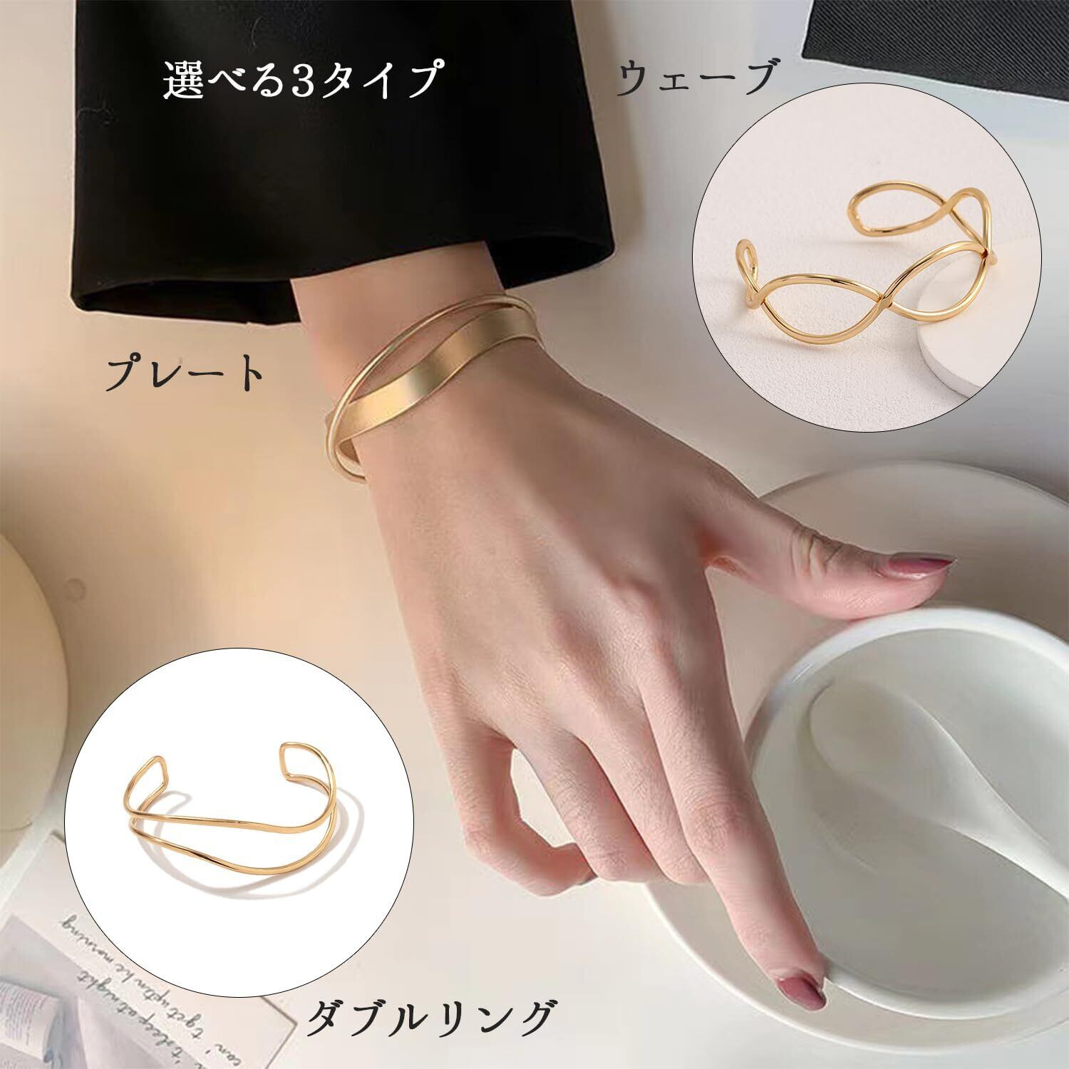 バングル ブレスレット メタルバングル レディース プレート カーブライン カーブ ウェーブ ニュアンス 曲線 波線 メタル 太め 人気 韓国
