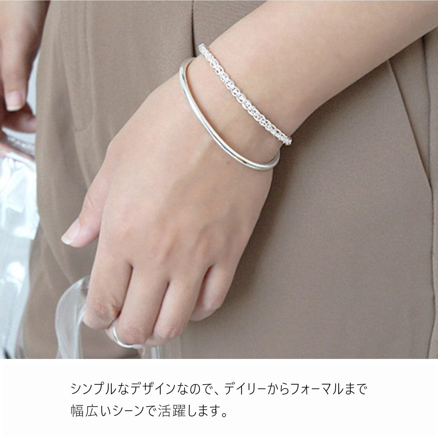 プレーンなデザインなので重ね付け自在のバングル シンプルな装いでもスタイリッシュにまとめてくれる嬉しいアイテムです。 主張しないシンプルなデザインは腕時計などのアクセサリーと 合わせて重ね付けしても付け過ぎ感を感じさせない優れものです。
