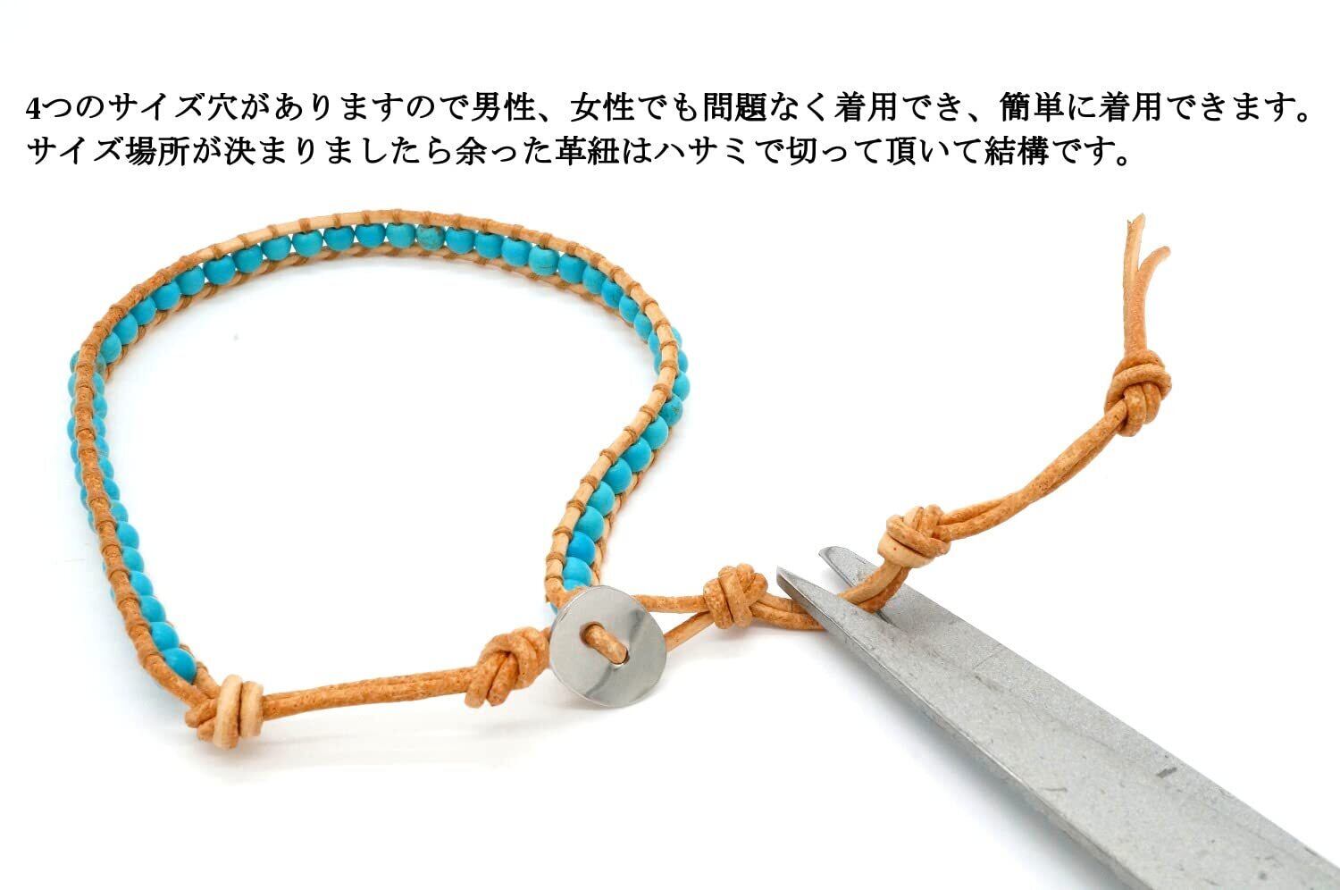 ユニセックスで着用可能なアンクレットです。 写真のYs jewelry オリジナル巾着にてお届けいたします。 ※お好みのアンクレットカラーをお選びください。 約4mm玉の天然石を使用し手作りにて編み込んだブレイドアンクレットです。 4つのサイズ調整があるので男女ともに着用できるアンクレットとなります。 余った革紐はハサミで切っていただければ邪魔になりません。
