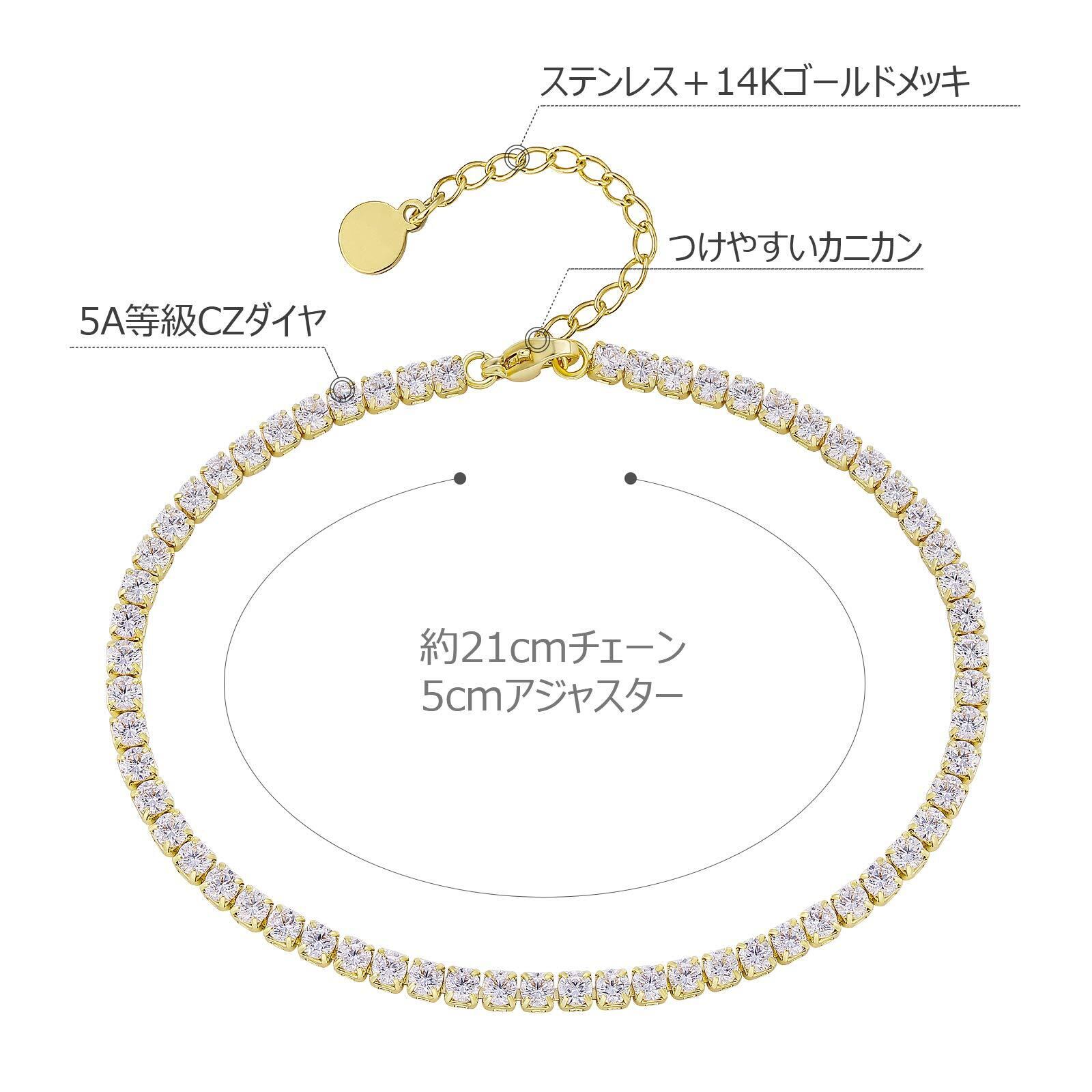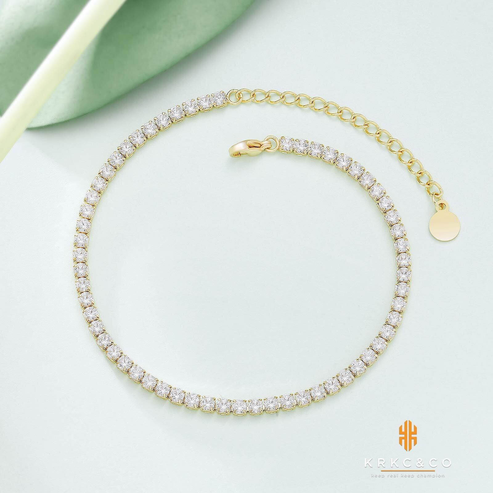 KRKC&CO アンクレット レディース 幅3/4mm テニスアンクレット ステンレス ダイヤストーン 21+5cmアジャスター ジルコニア テニスブレス キラキラ シンプル かわいい 足首 アクセサリー | 毎日発送✿はなまる