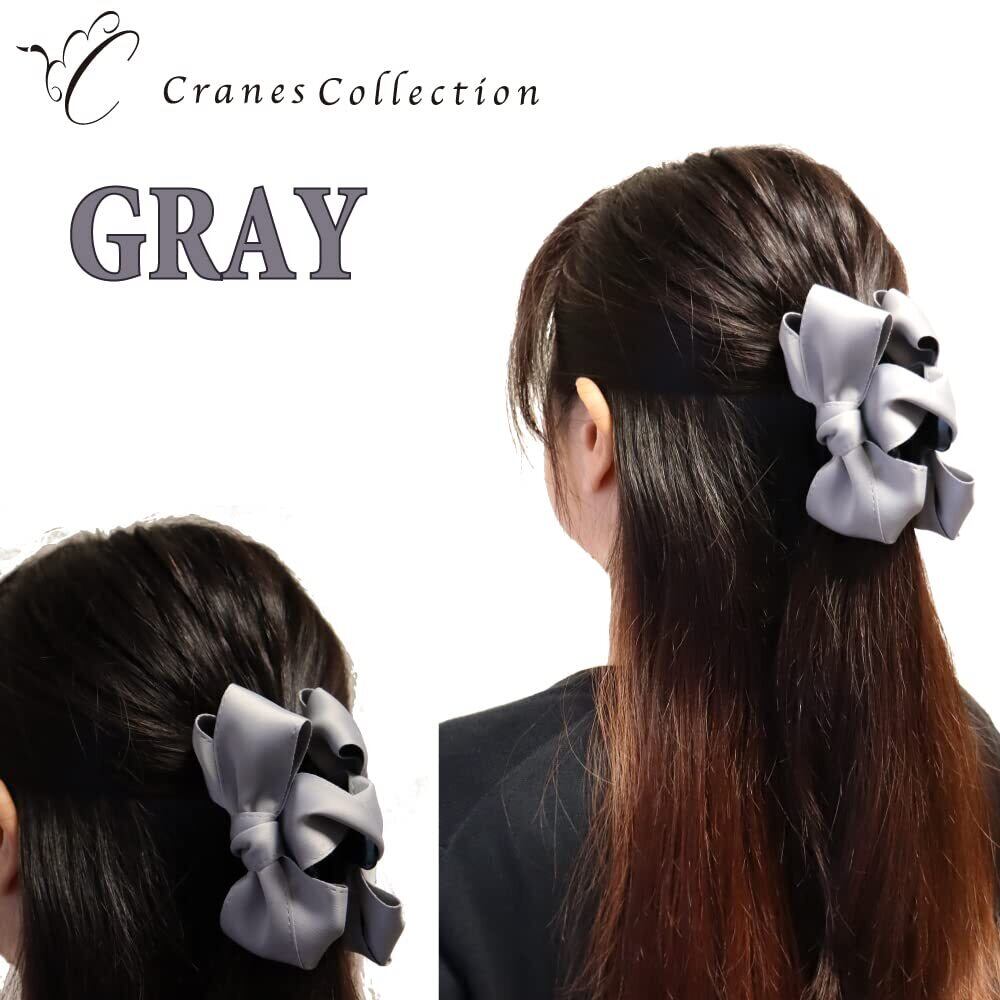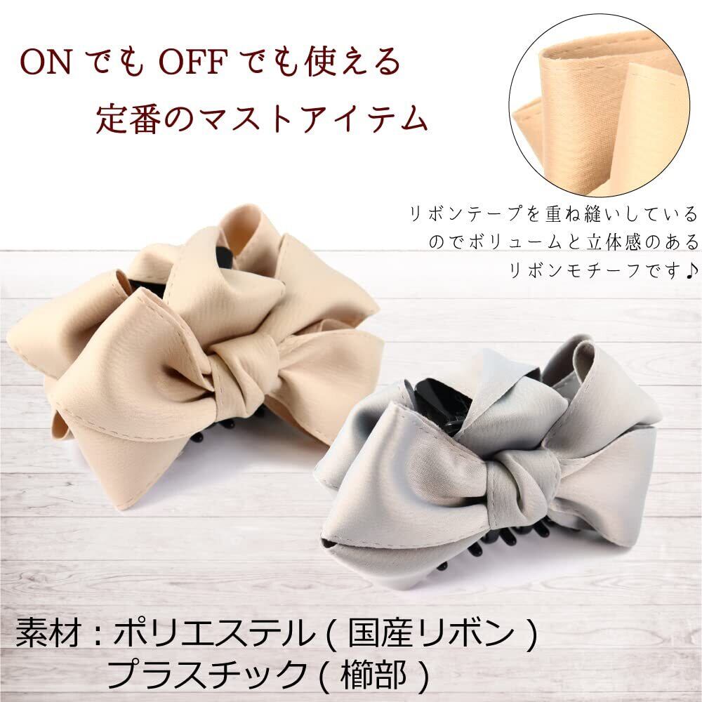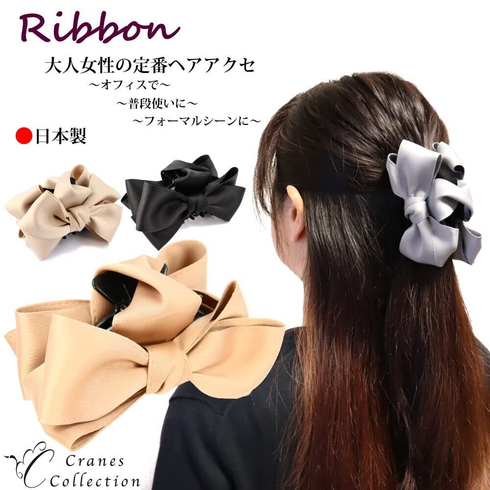 リボン バンスクリップ 日本製 大きめ 大人 ヘアクリップ カジュアル フォーマル 髪留め アレンジ バンスクリップ 交換付 グレー GB2311