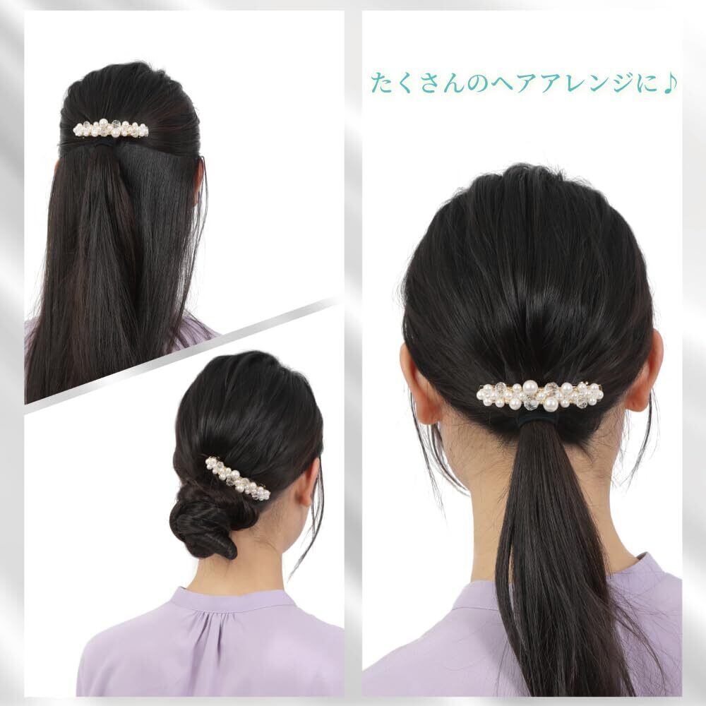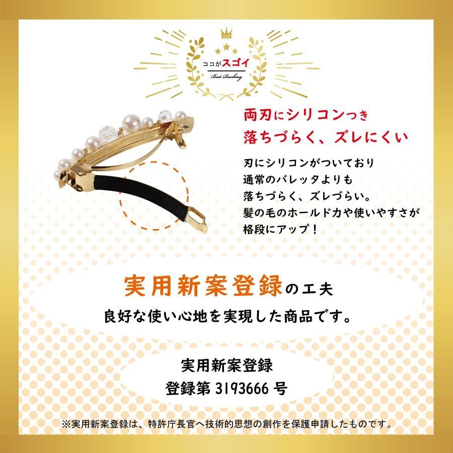 パール ビジュー バレッタ ヘアアクセ 日本製 大人 挟む お洒落 上品 アレンジ 映え 装飾 滑り止め ロゴ入巾着付 (タイプA)