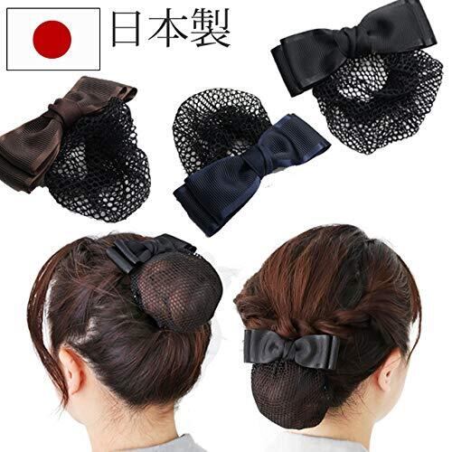 リボン バレッタ (シニヨン細編みネット付) サテン縁取りのリボン (日本製)