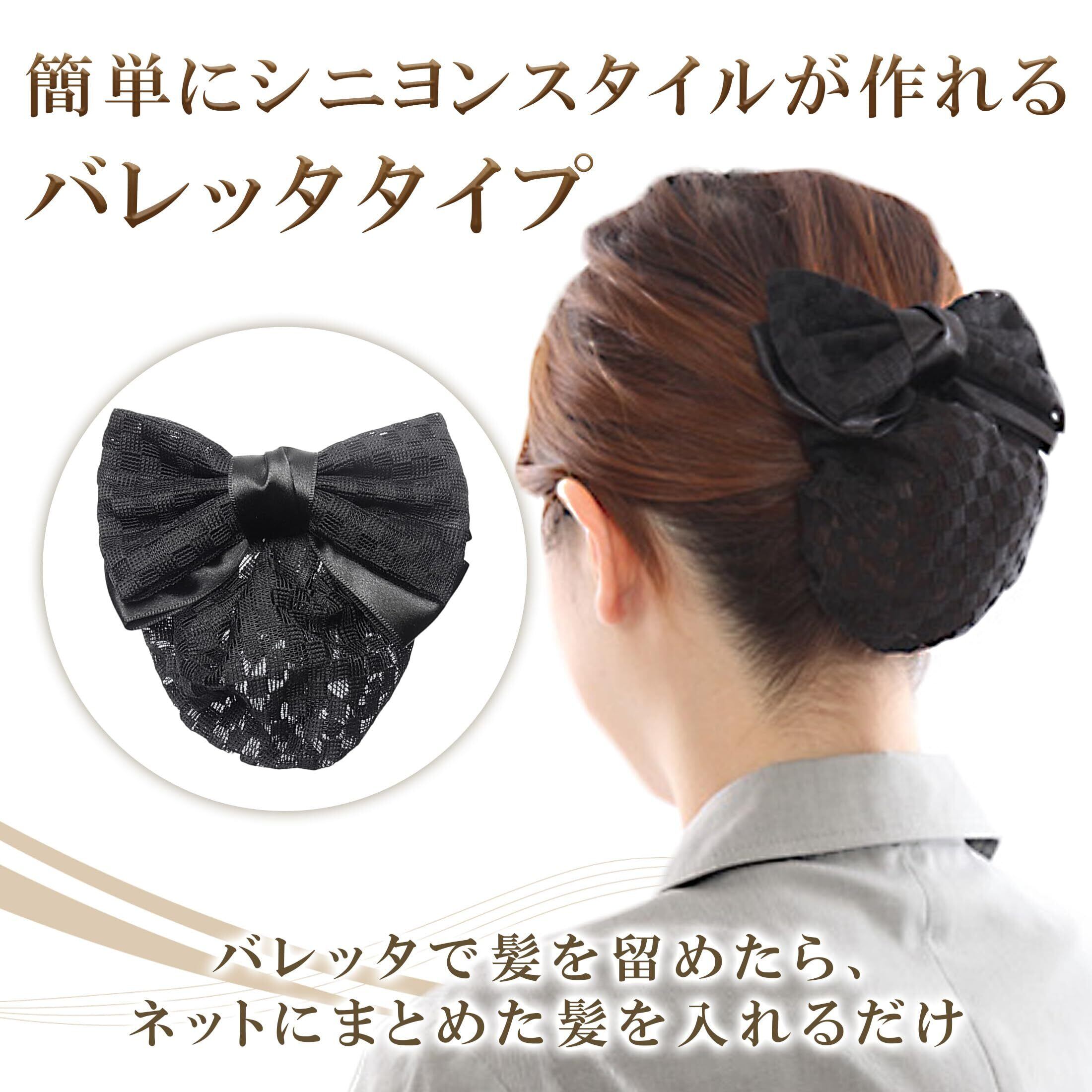 【特徴】 余分な装飾のないシンプル設計。レース生地のカバーが髪を美しく整え、多い髪もしっかりまとめやすい。レース生地のカバーが多い髪も美しく整えます。