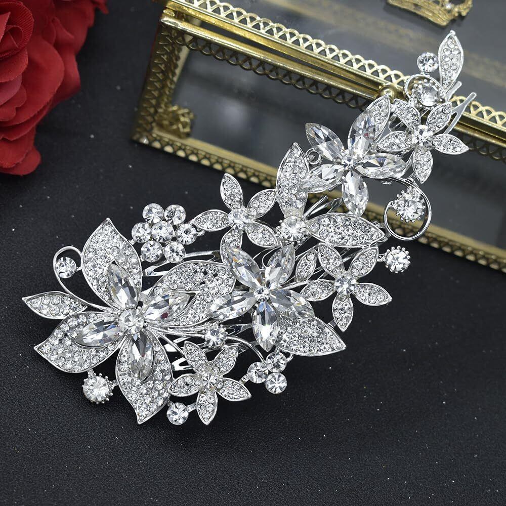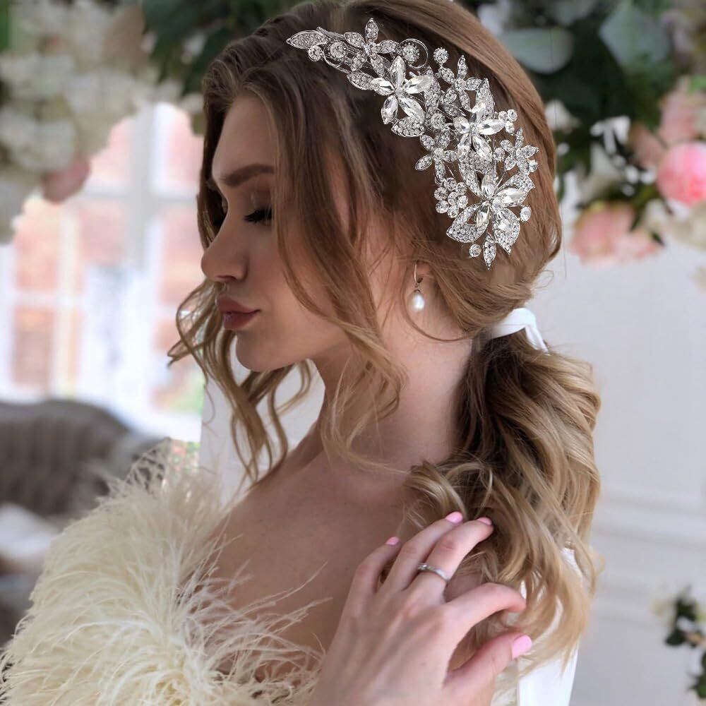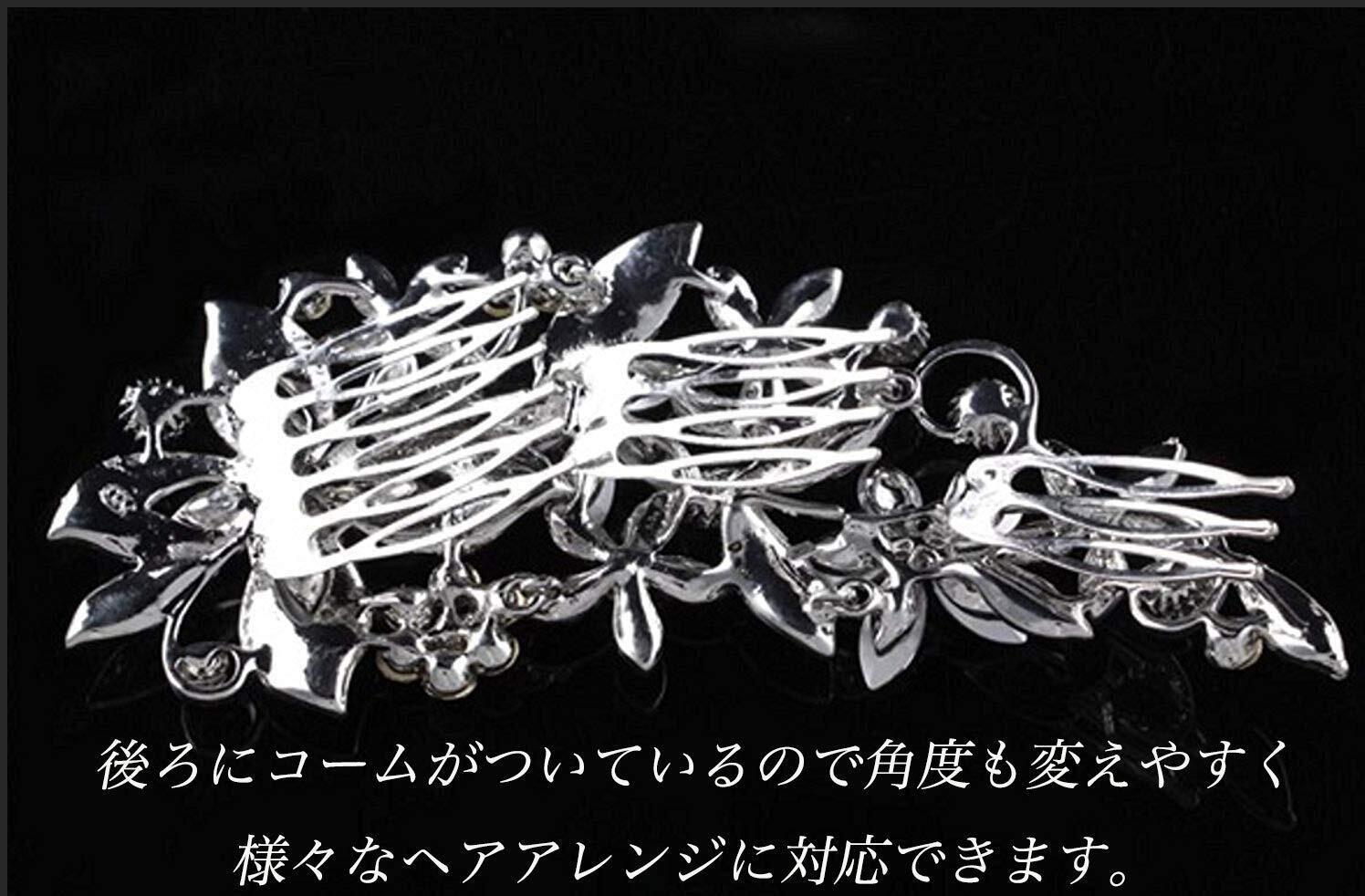 後ろはコームが3箇所についているので角度も変えやすく様々なヘアアレンジに対応できます。トップ、サイド、シニヨンなど付ける位置を変えることでイメージを変えることができます ウェディングドレスで挙式と披露宴で イメージを変えたい方にもぴったりです。