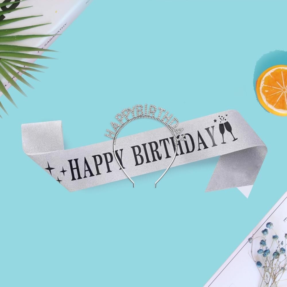 【セット内容】「HAPPY BIRTHDAY」王冠x1、サイズ約:17*16.5cm、サッシュのx1 サイズ約:80*9.5cm。